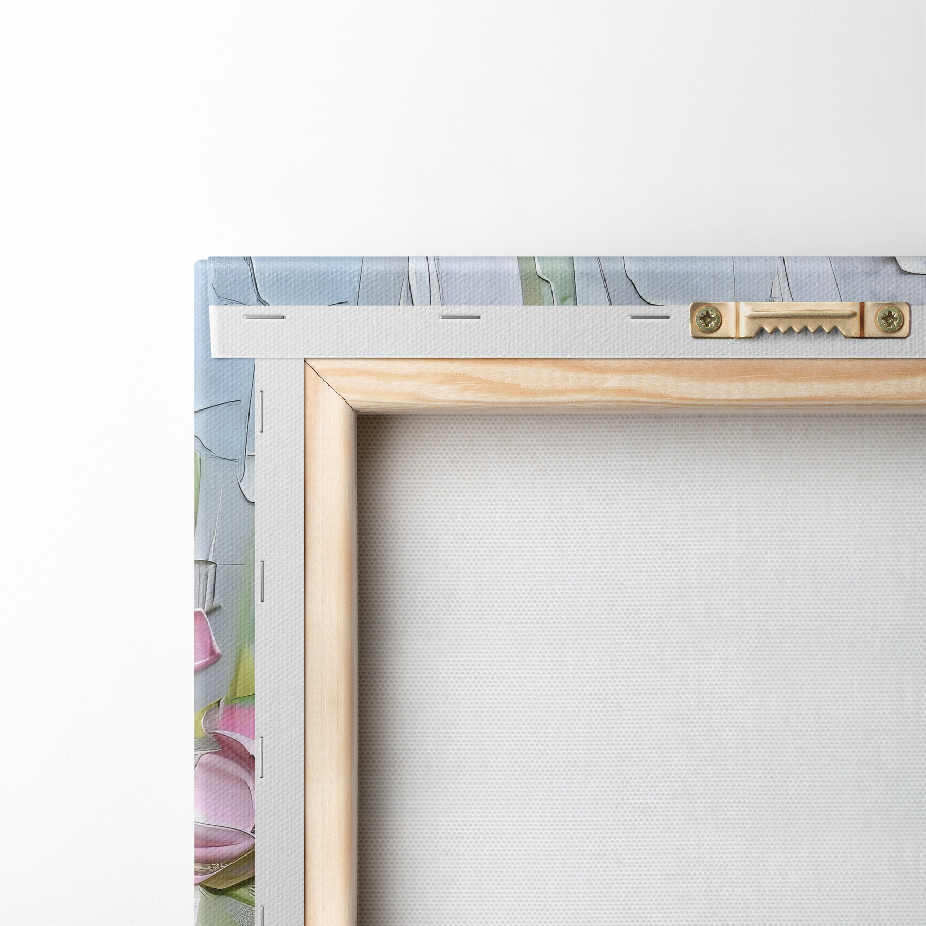 To stretch the canvas on stretcher bars without damaging the image, we use mirrored image.