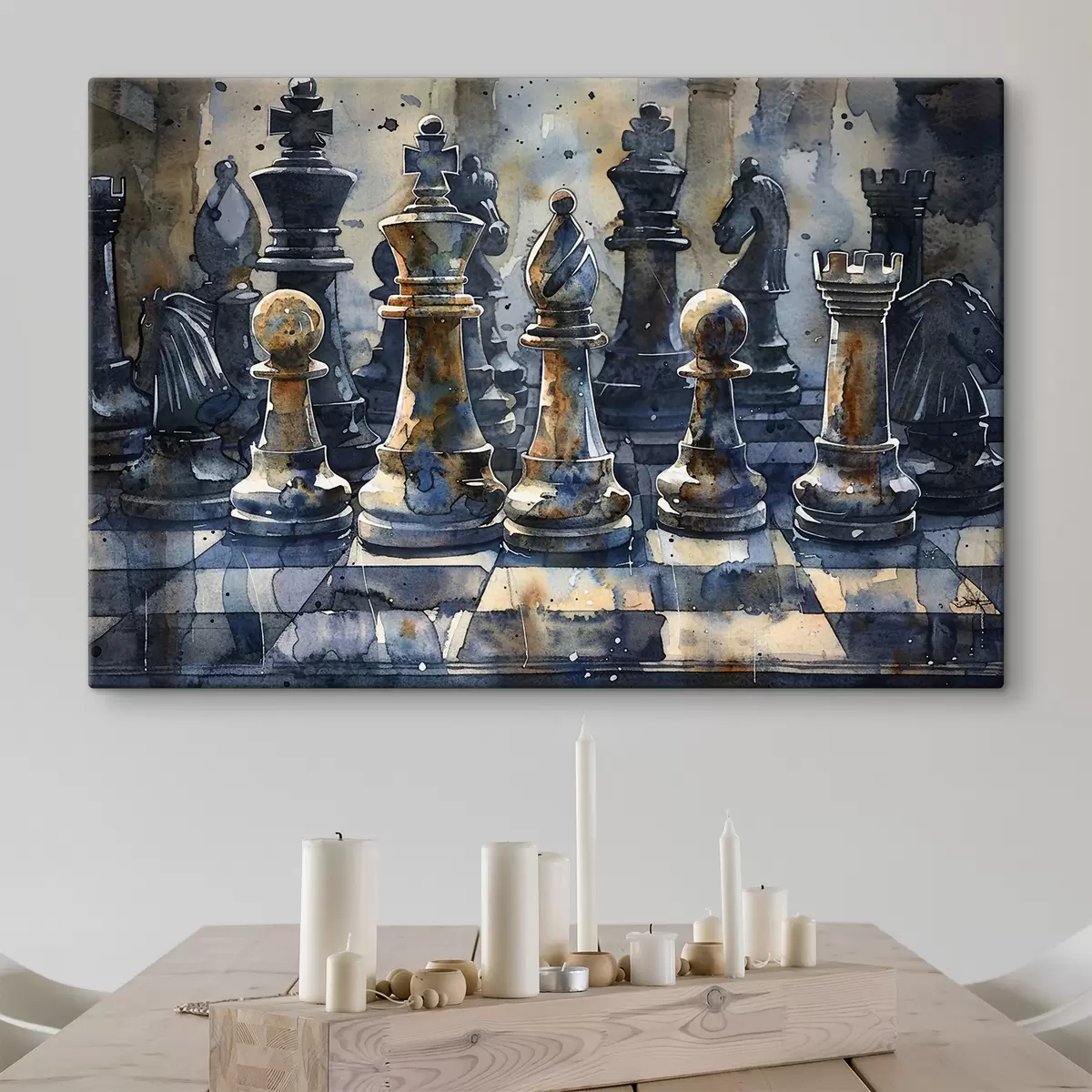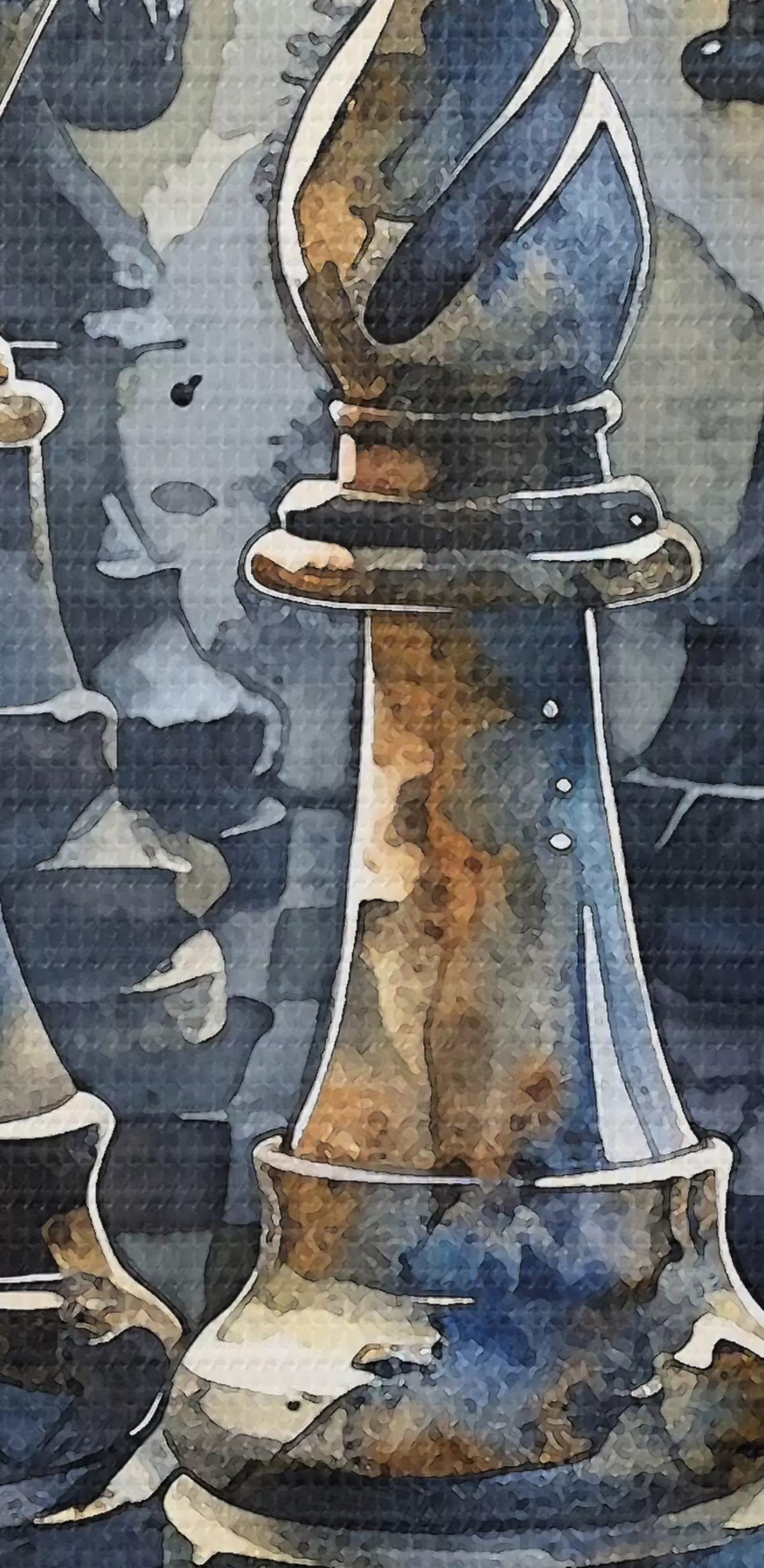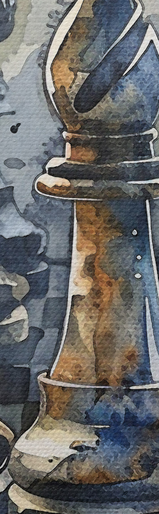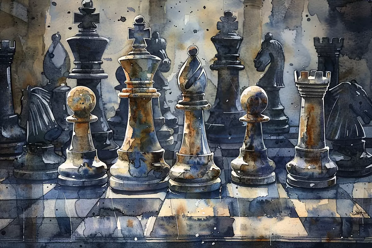 Picture Watercolor painting close-up view of a chess made of metal or stone, with detailed designs and textures Nr s38960