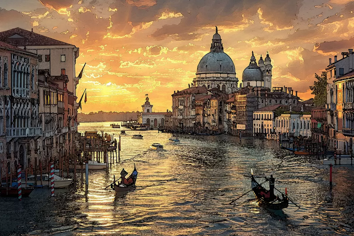 Picture A scenic view painting of the Grand Canal in Venice, Italy at sunset Nr s38963