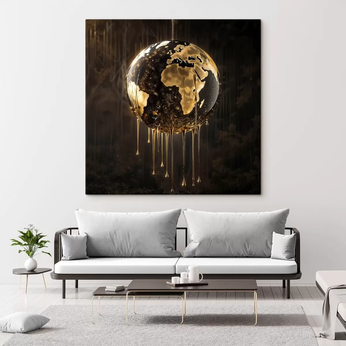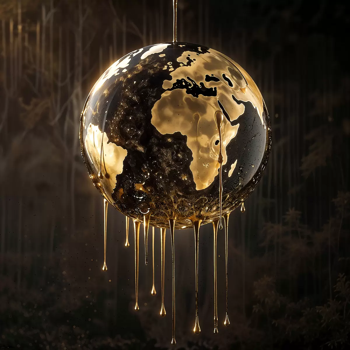 Picture A glowing globe depicting the Earth surrounded by dripping liquid against a dark background Nr s38983