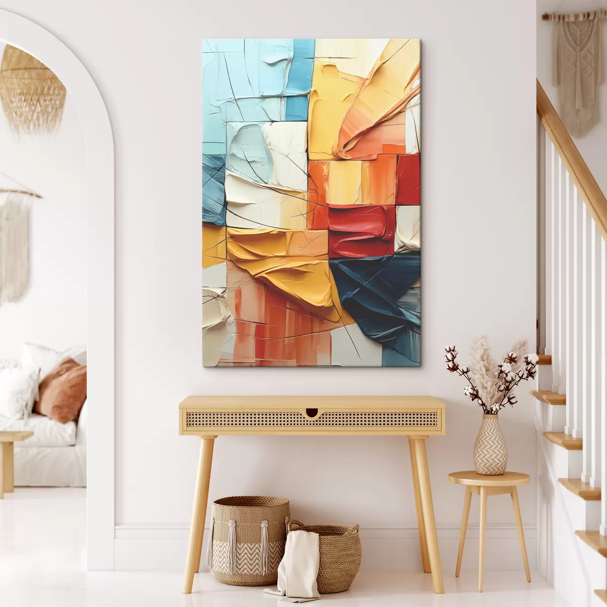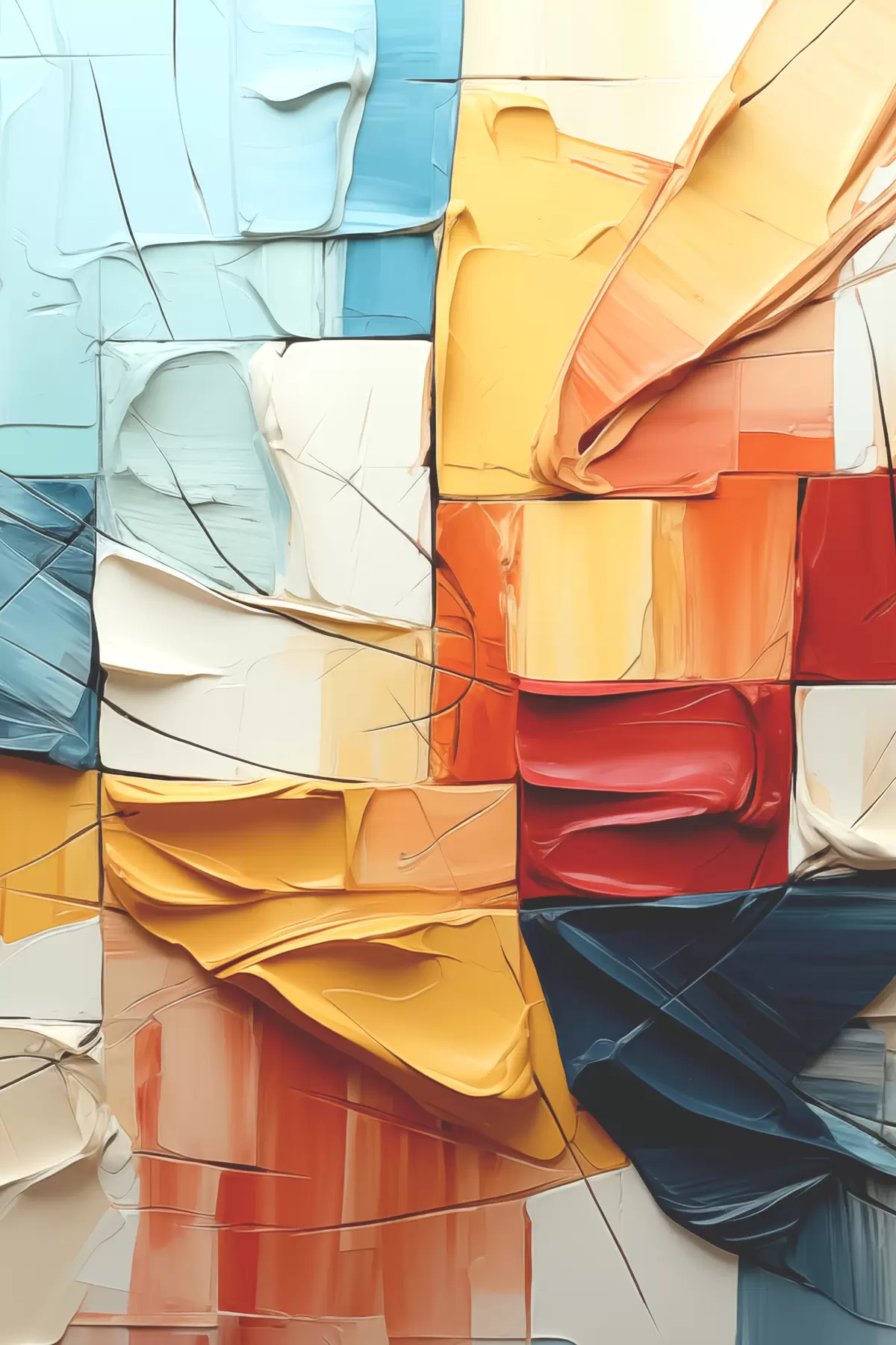 Picture Pieces of bright paint with cracks, squares, cubism painting Nr s39196