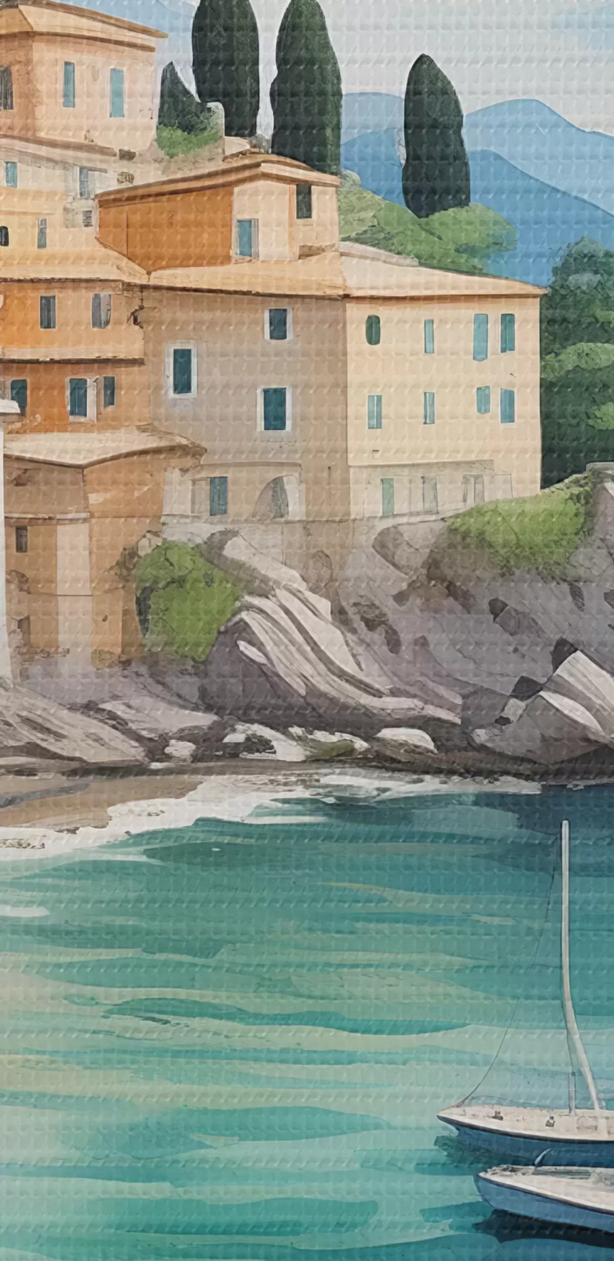 wall murals a town by the sea in summer s39299