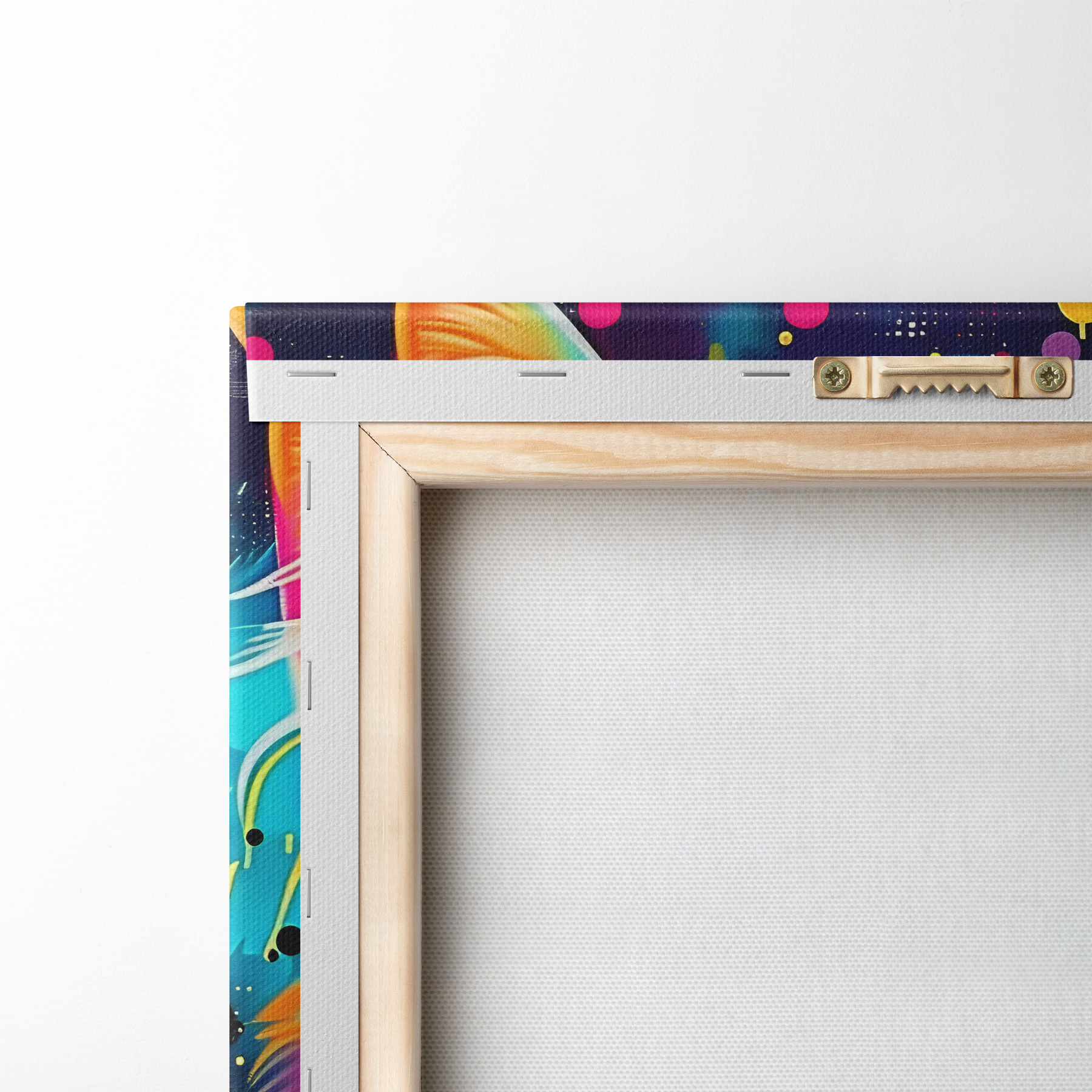 To stretch the canvas on stretcher bars without damaging the image, we use mirrored image.
