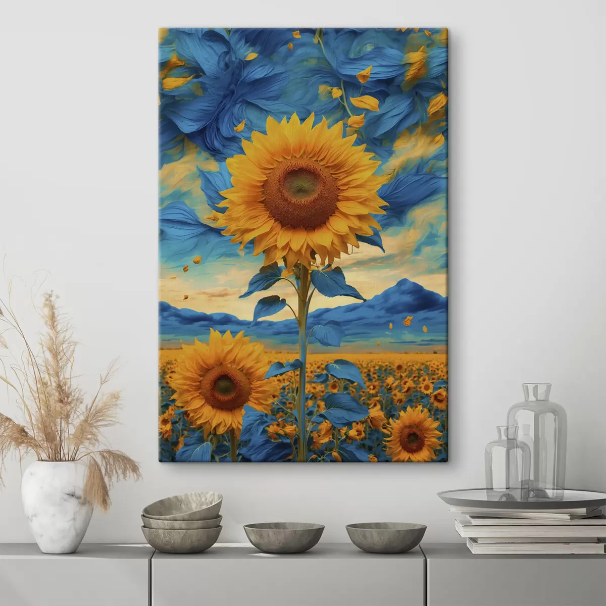 Picture Field of sunflowers over abstract sky Nr s39367