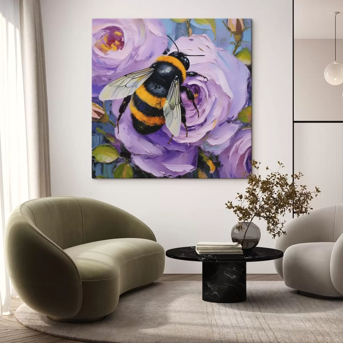 Picture Bee on the pink peonies, summer flowers, oil painting, vivid brush strokes Nr s39410