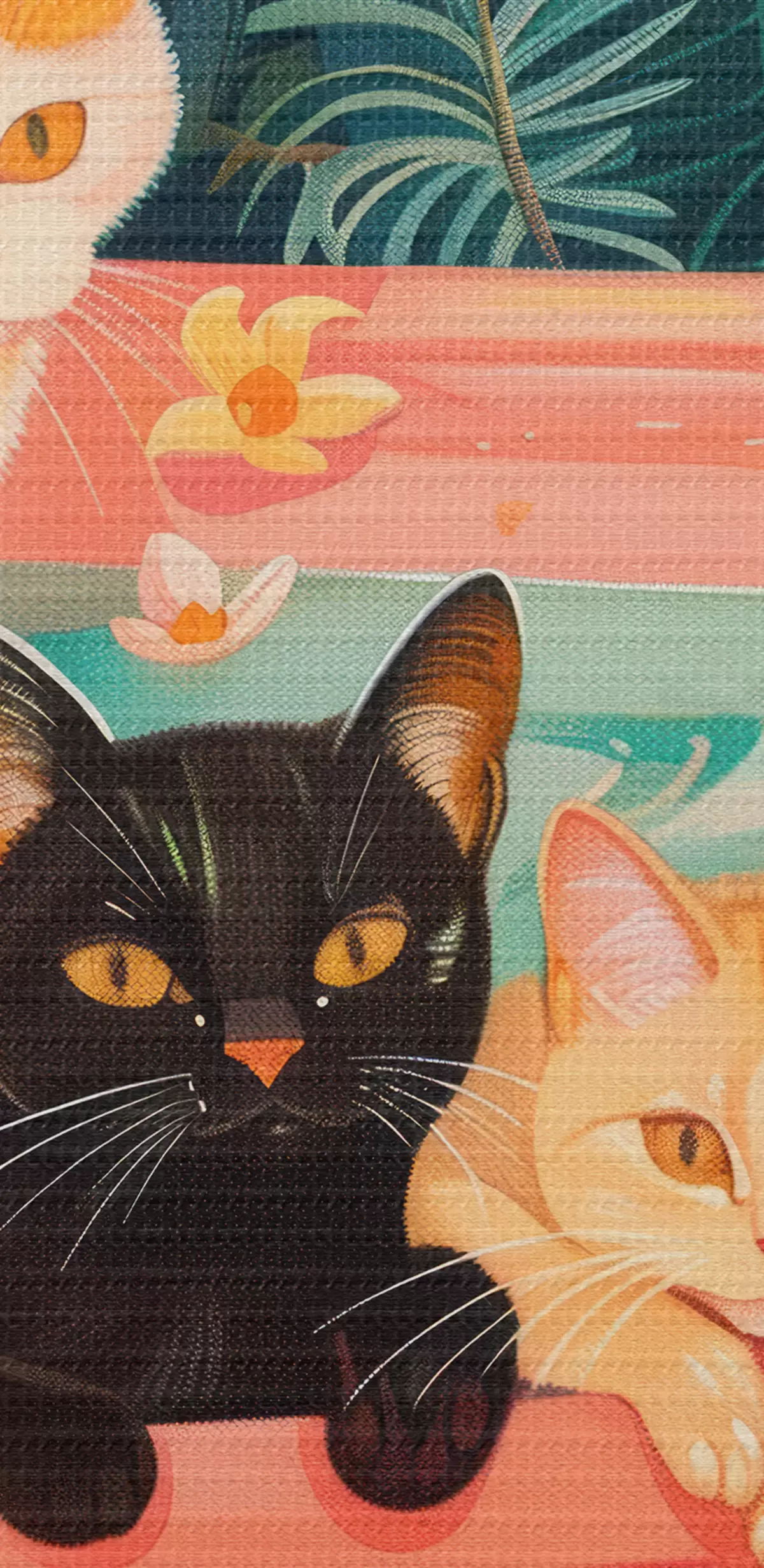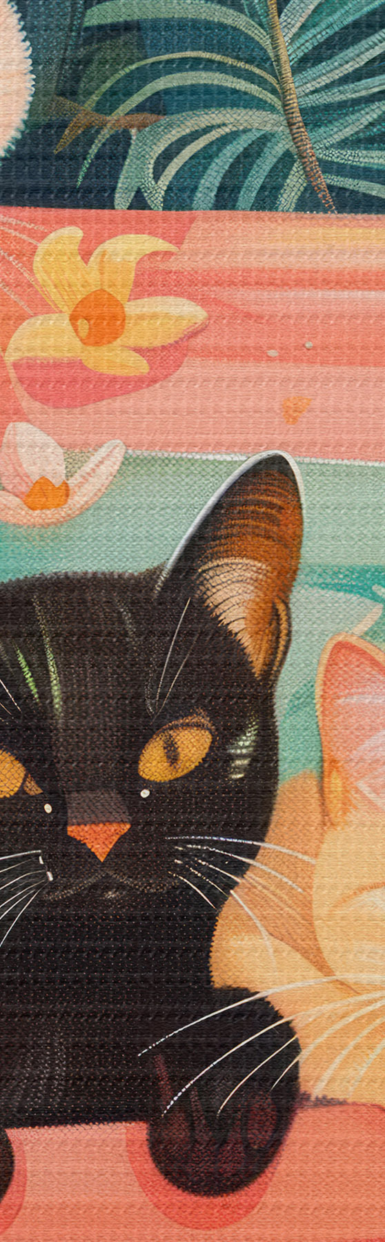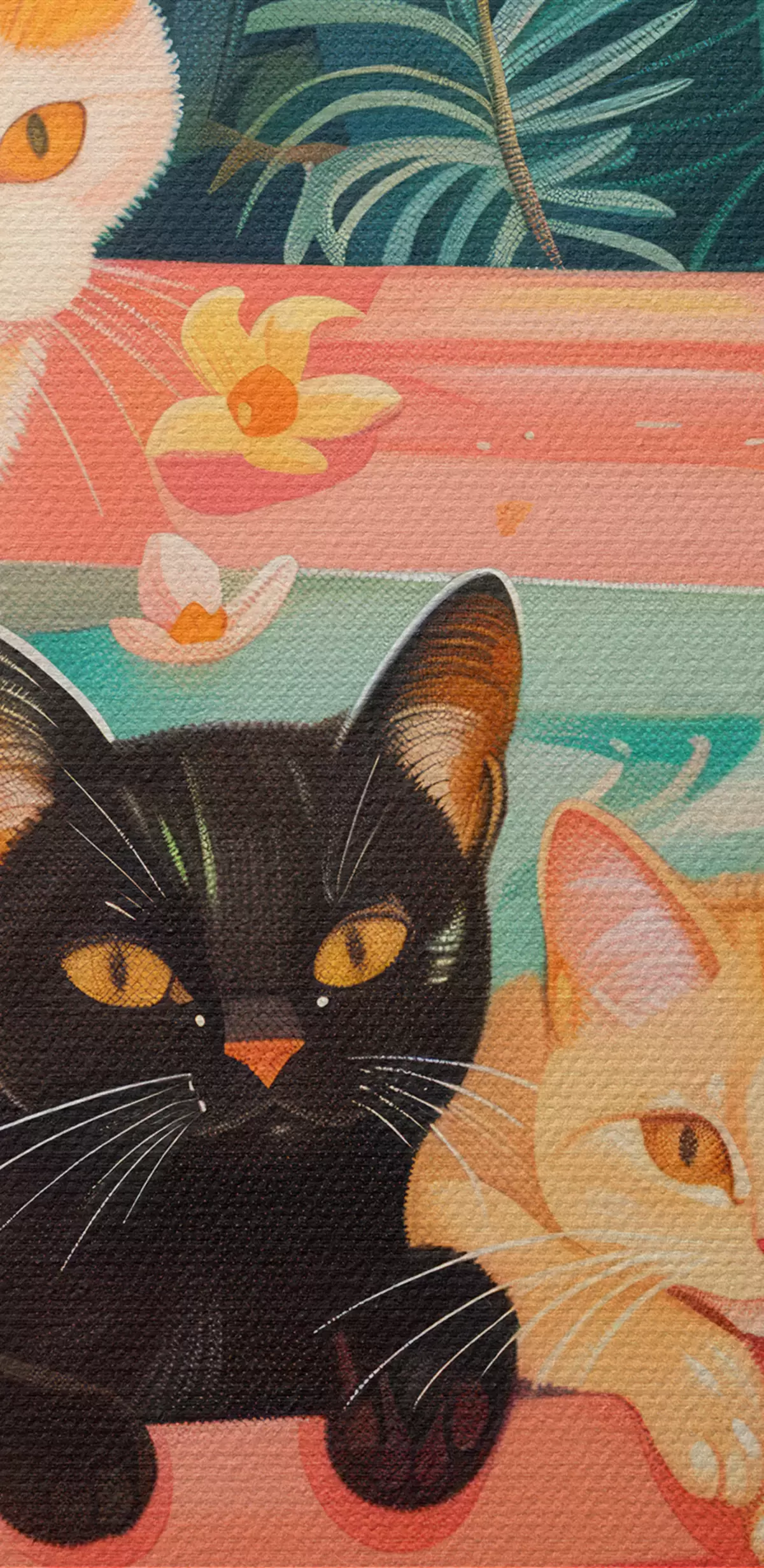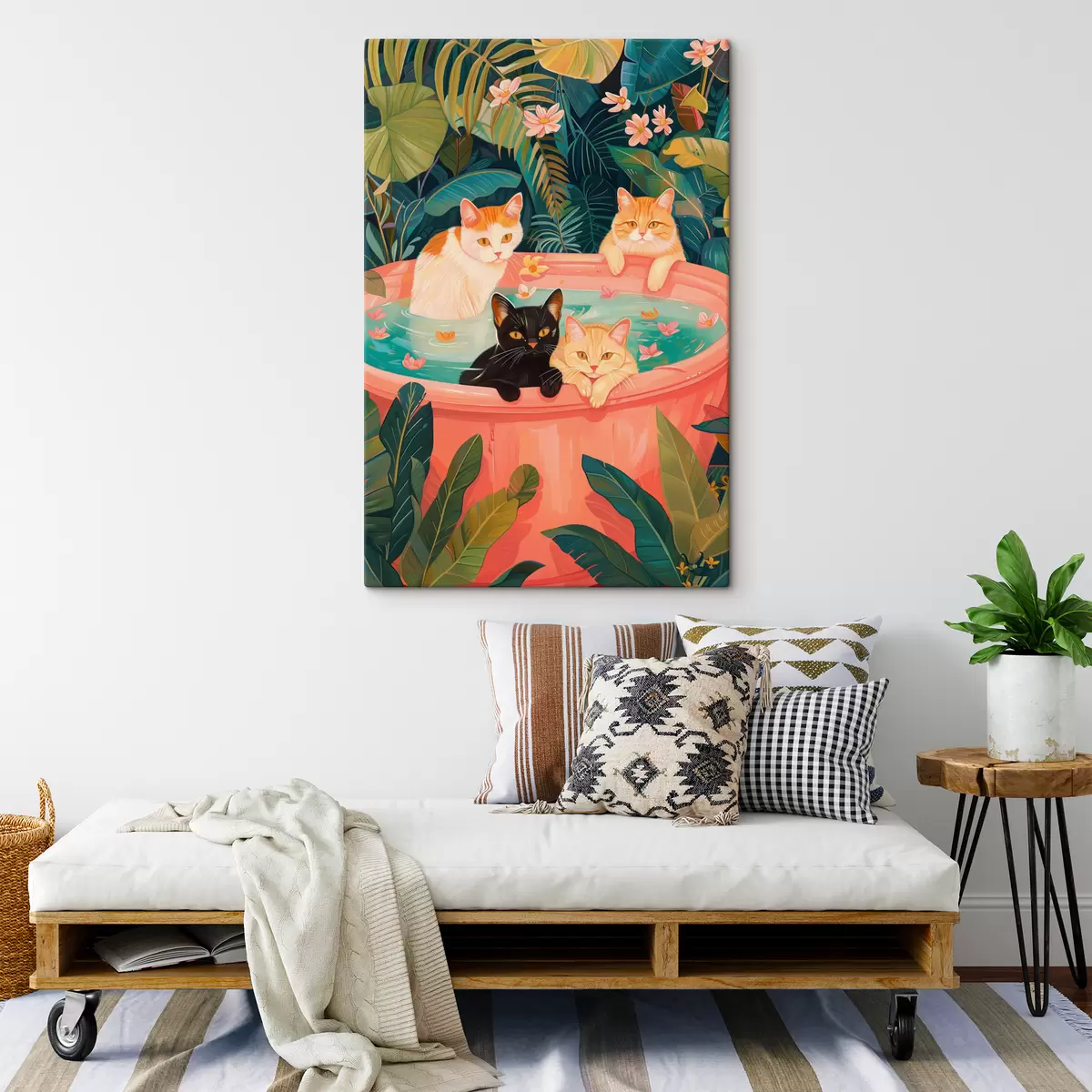 Picture Cats in a pink bath with green leaves, jungle atmosphere Nr s39465