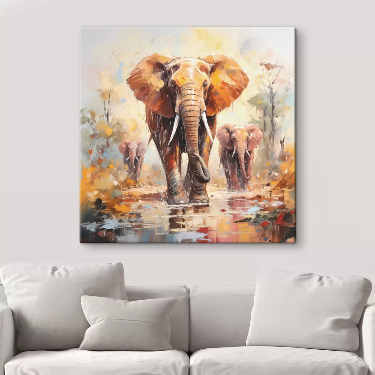 Picture A flock of elephants among the savannah, oil painting, abstract art Nr s39573