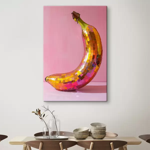 Picture Oil painted banay disco ball with light pastel pink background Nr s39766
