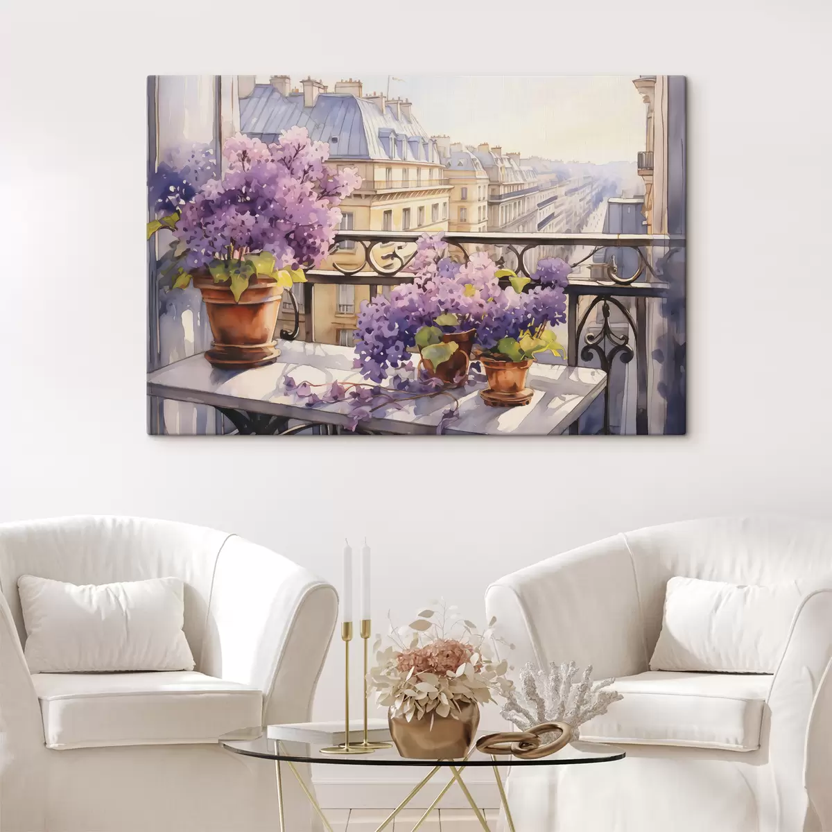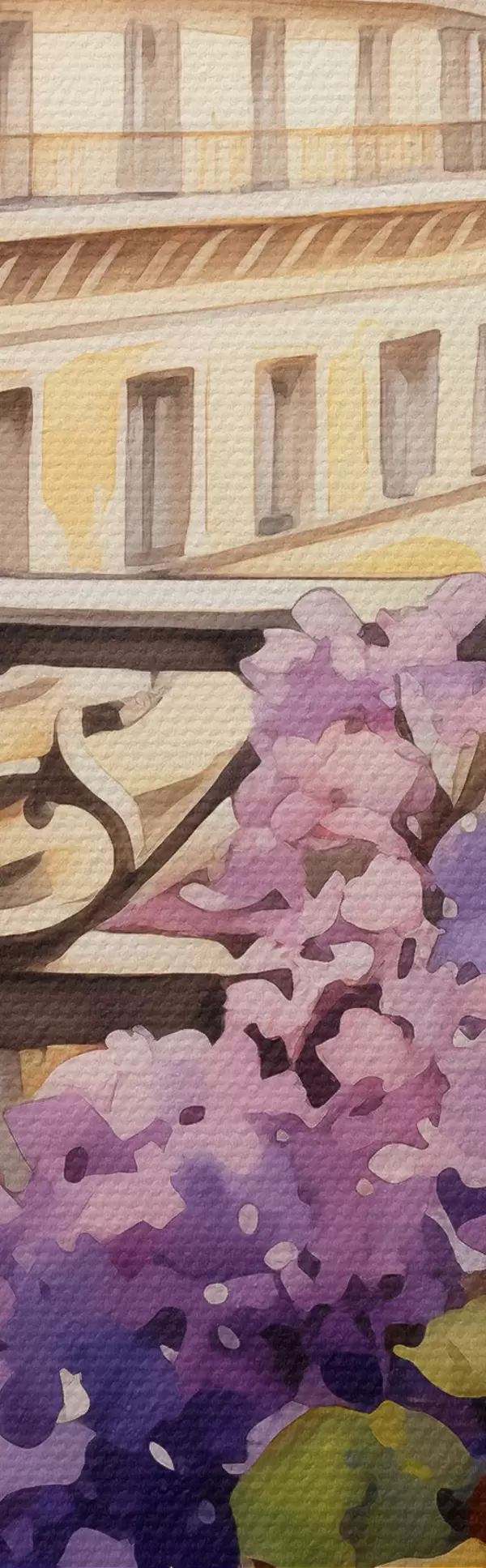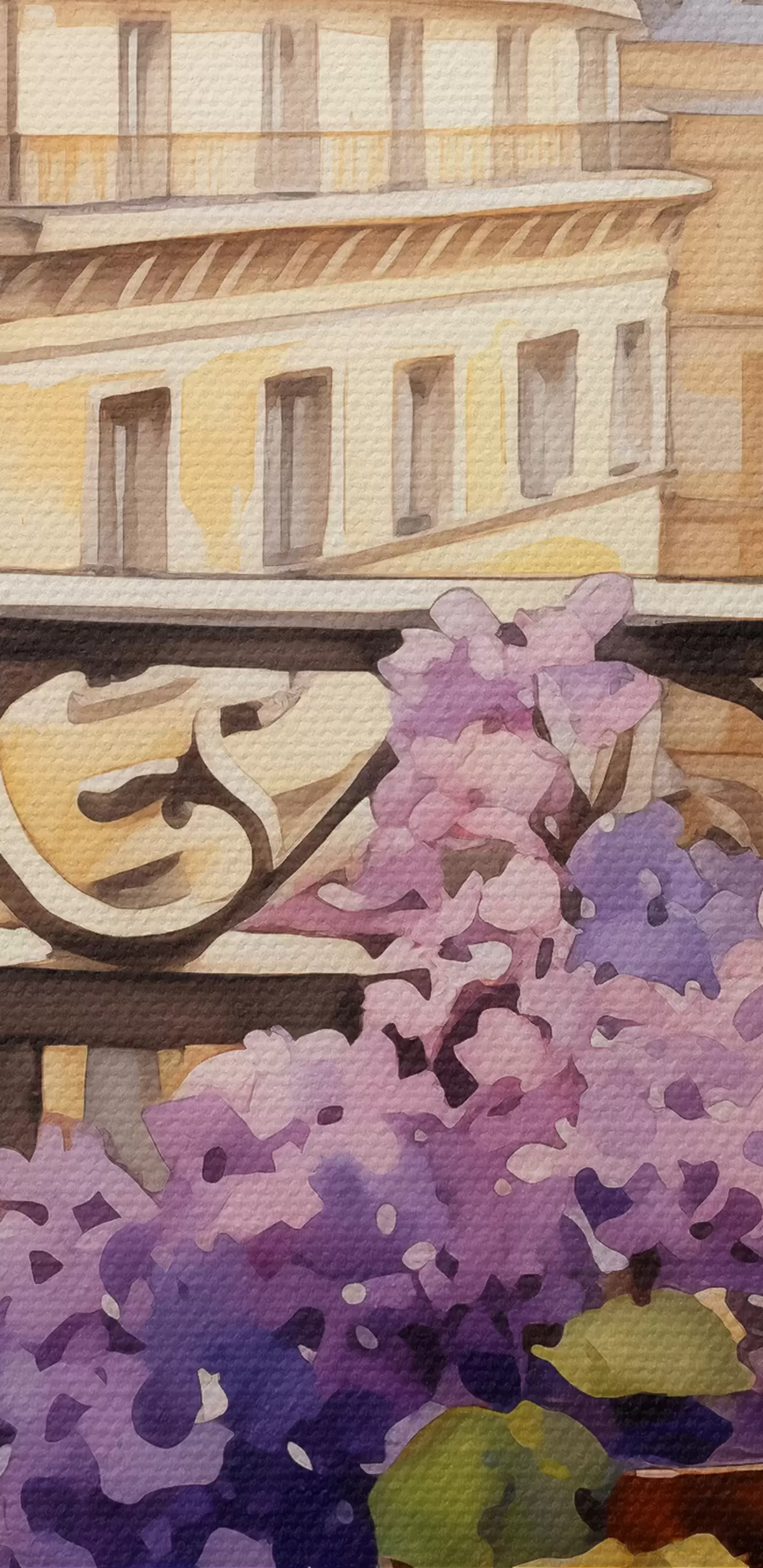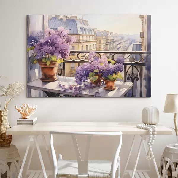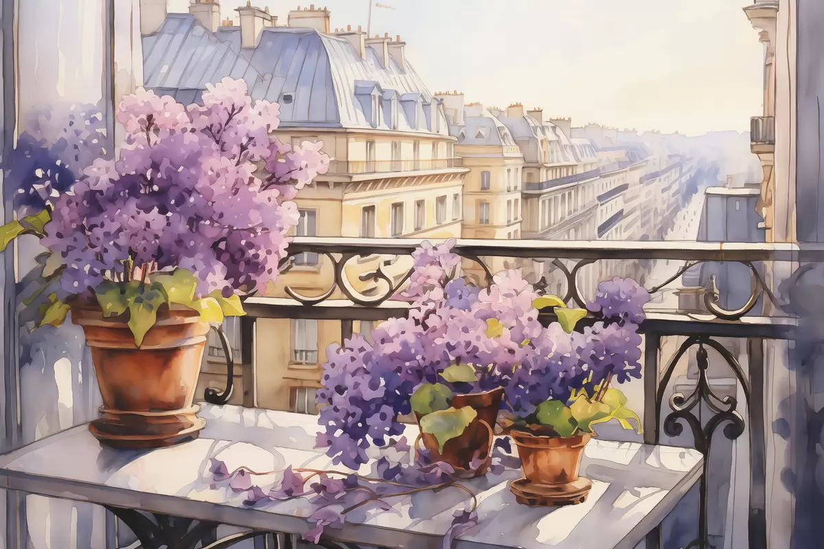 Picture Violets in a pot on a balcony in Paris watercolor Nr s39931