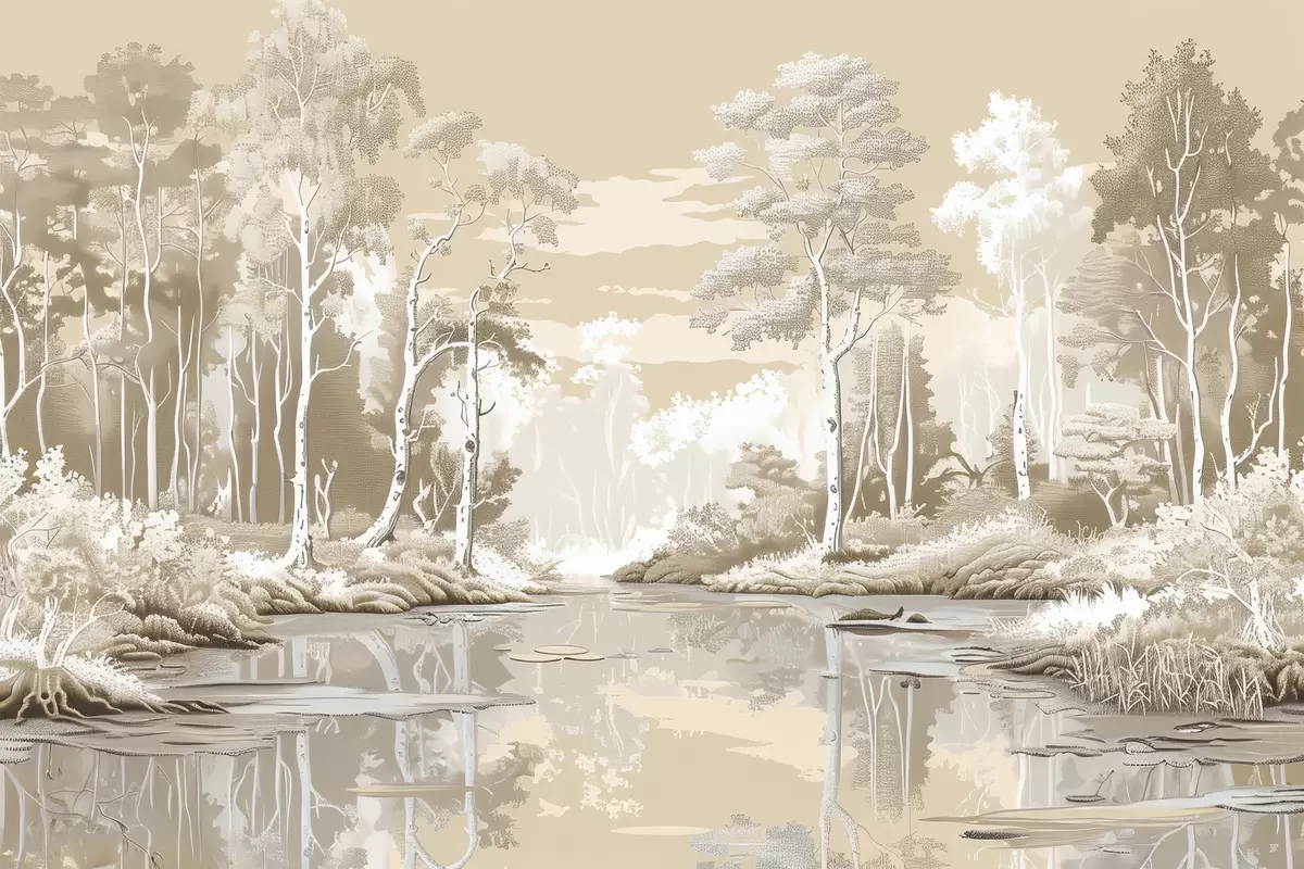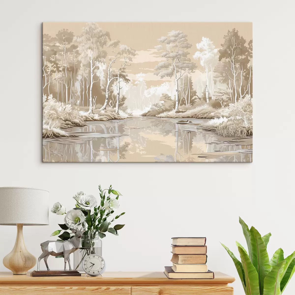 Picture Beautiful forest landscape, soft pastel colors, beige and white Nr s39978