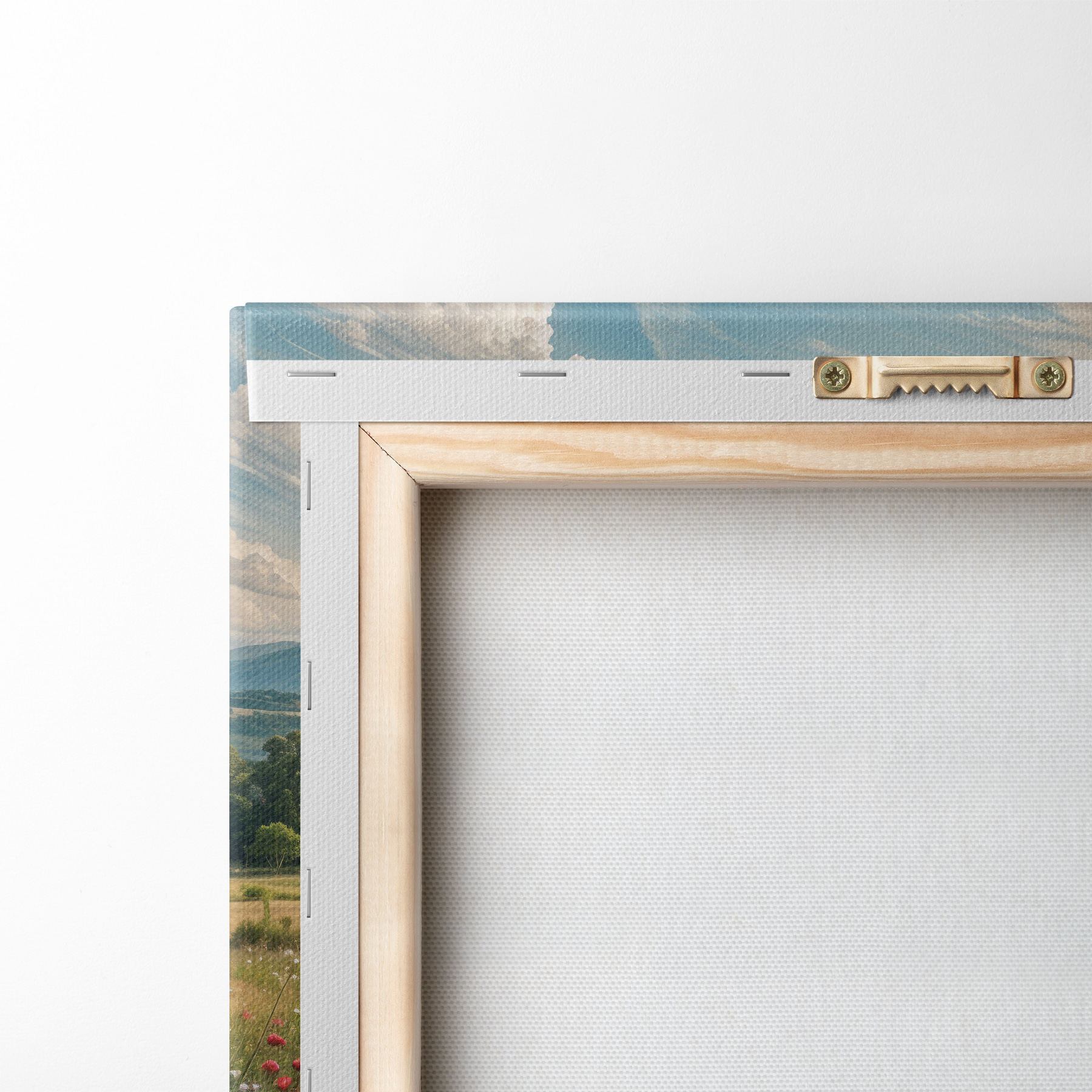 To stretch the canvas on stretcher bars without damaging the image, we use mirrored image.