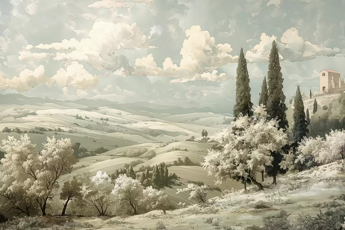Picture Summer landscape, vintage style, pastel colors, acrylic drawing, castle Nr s40084
