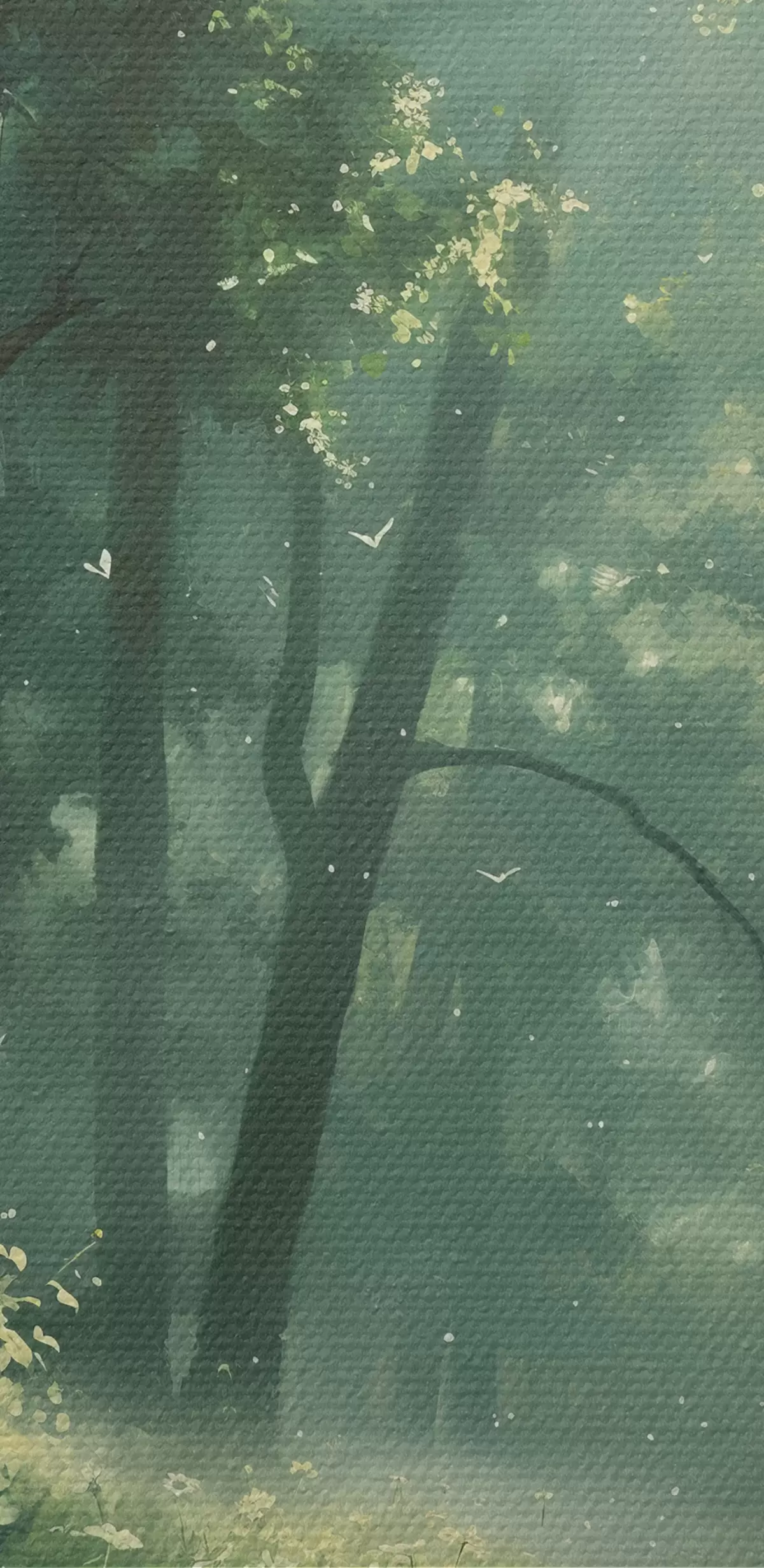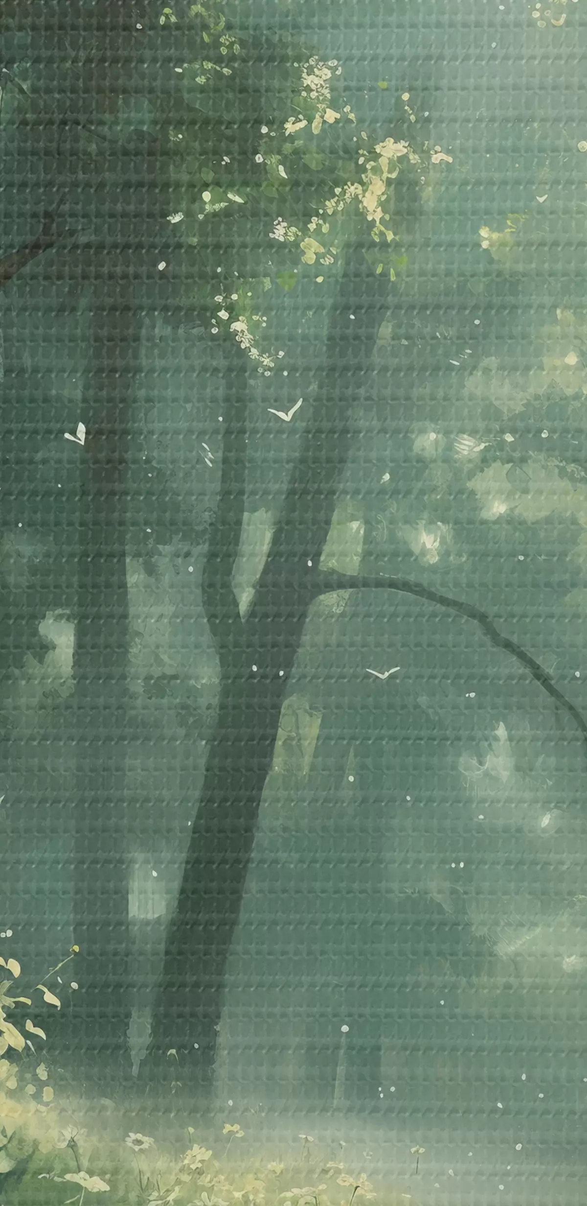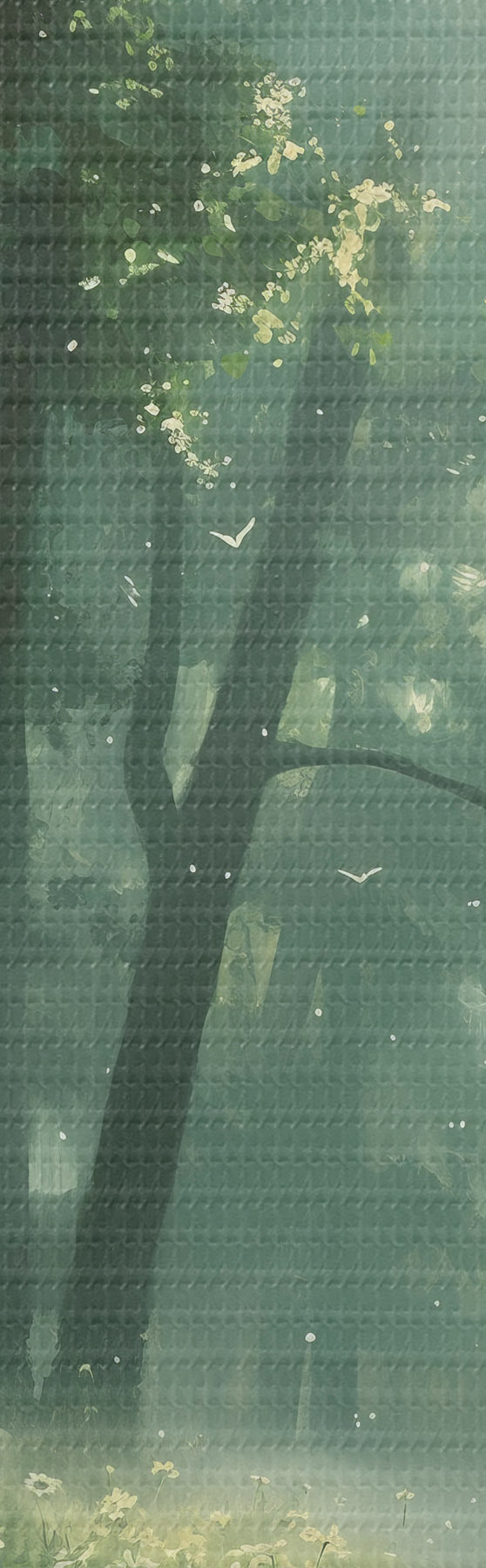Picture Dense forest with sunlight in the trees, camomile flowers, green grass, nature Nr s40224