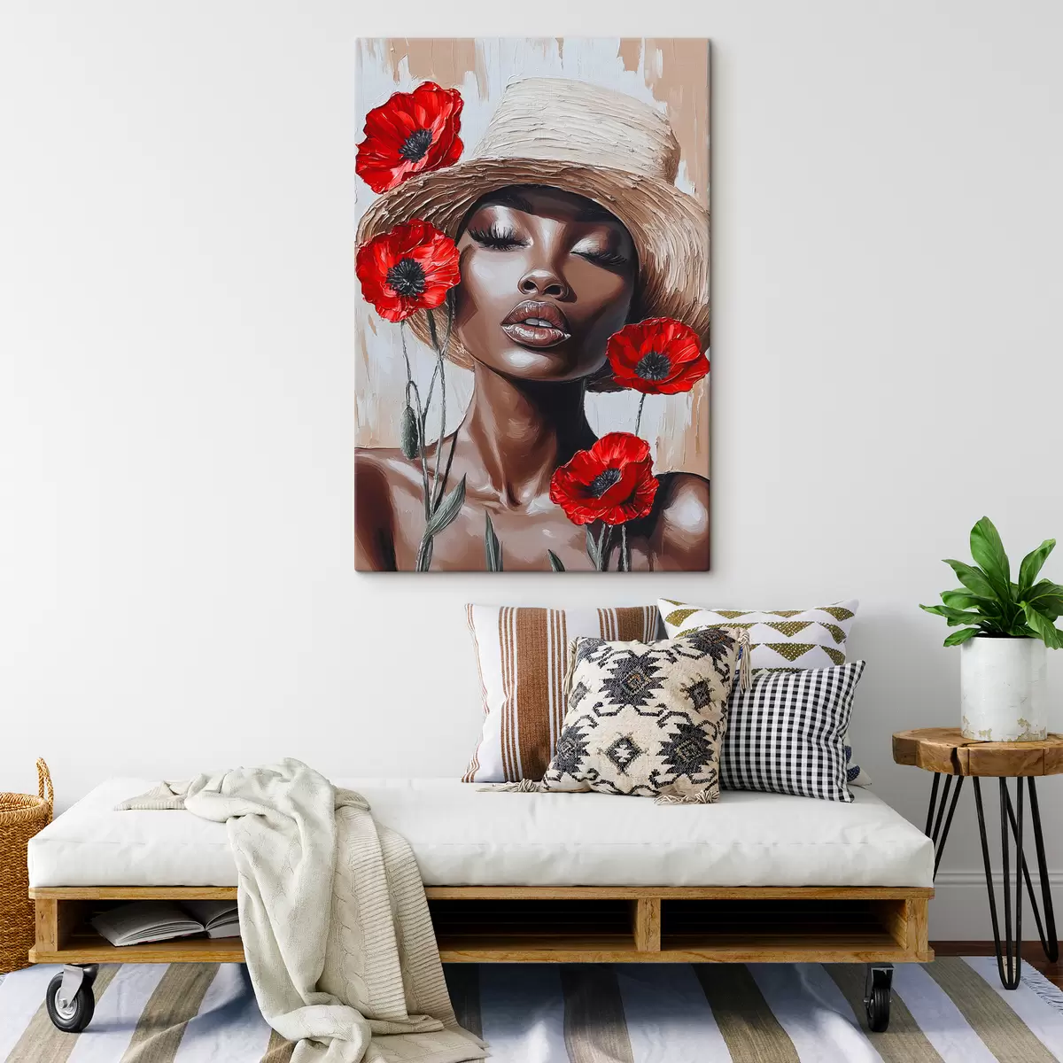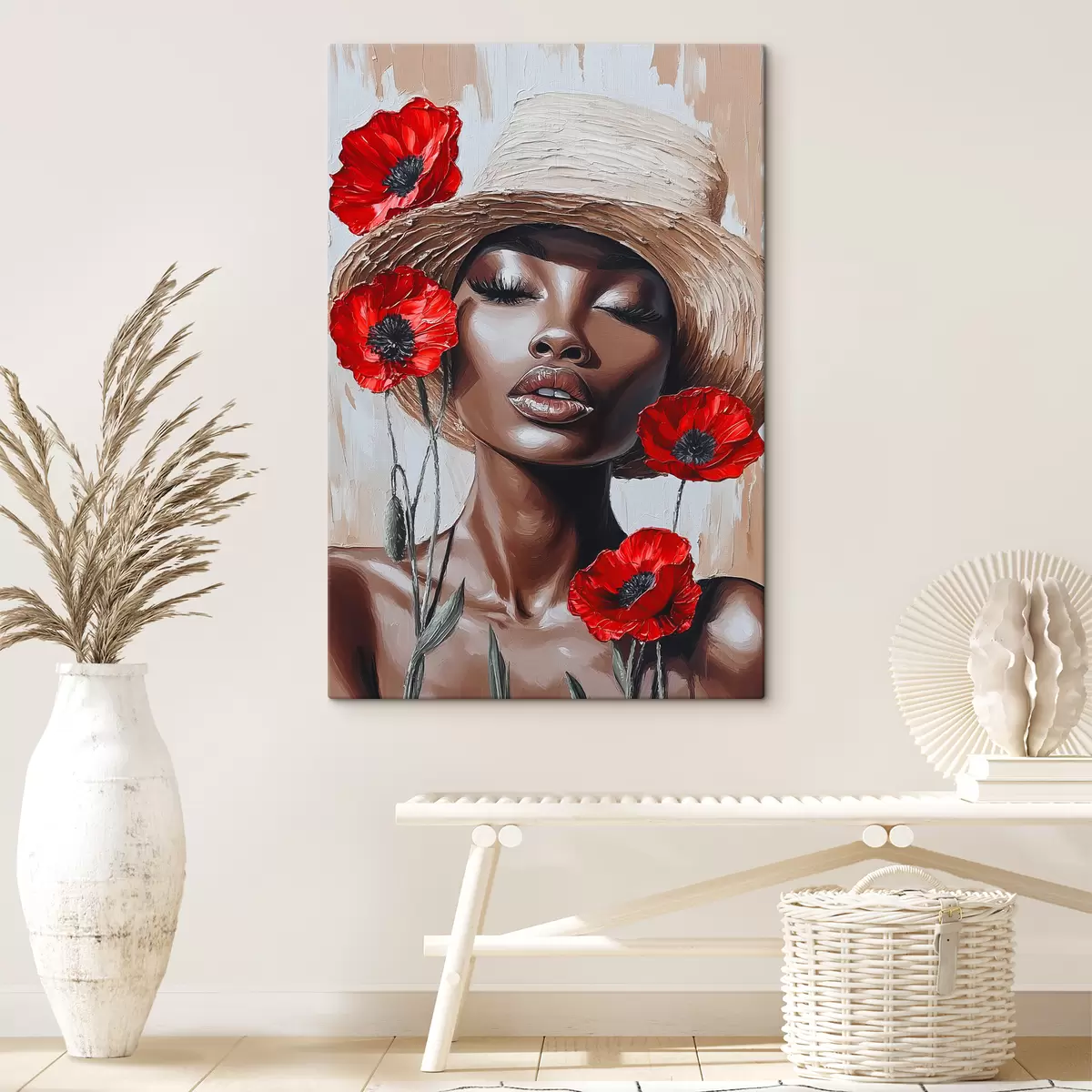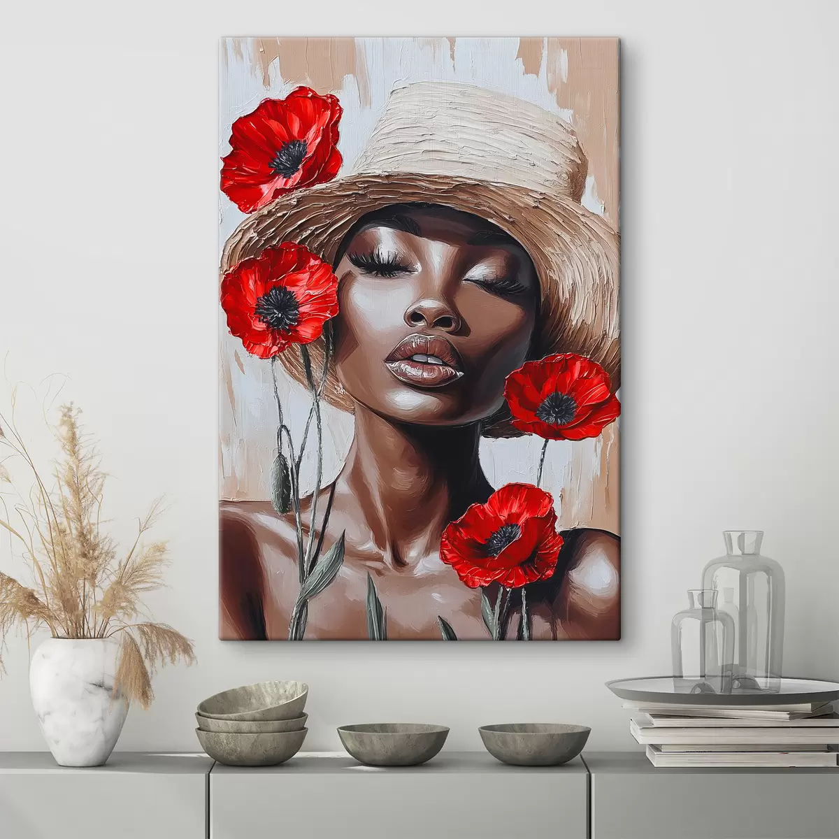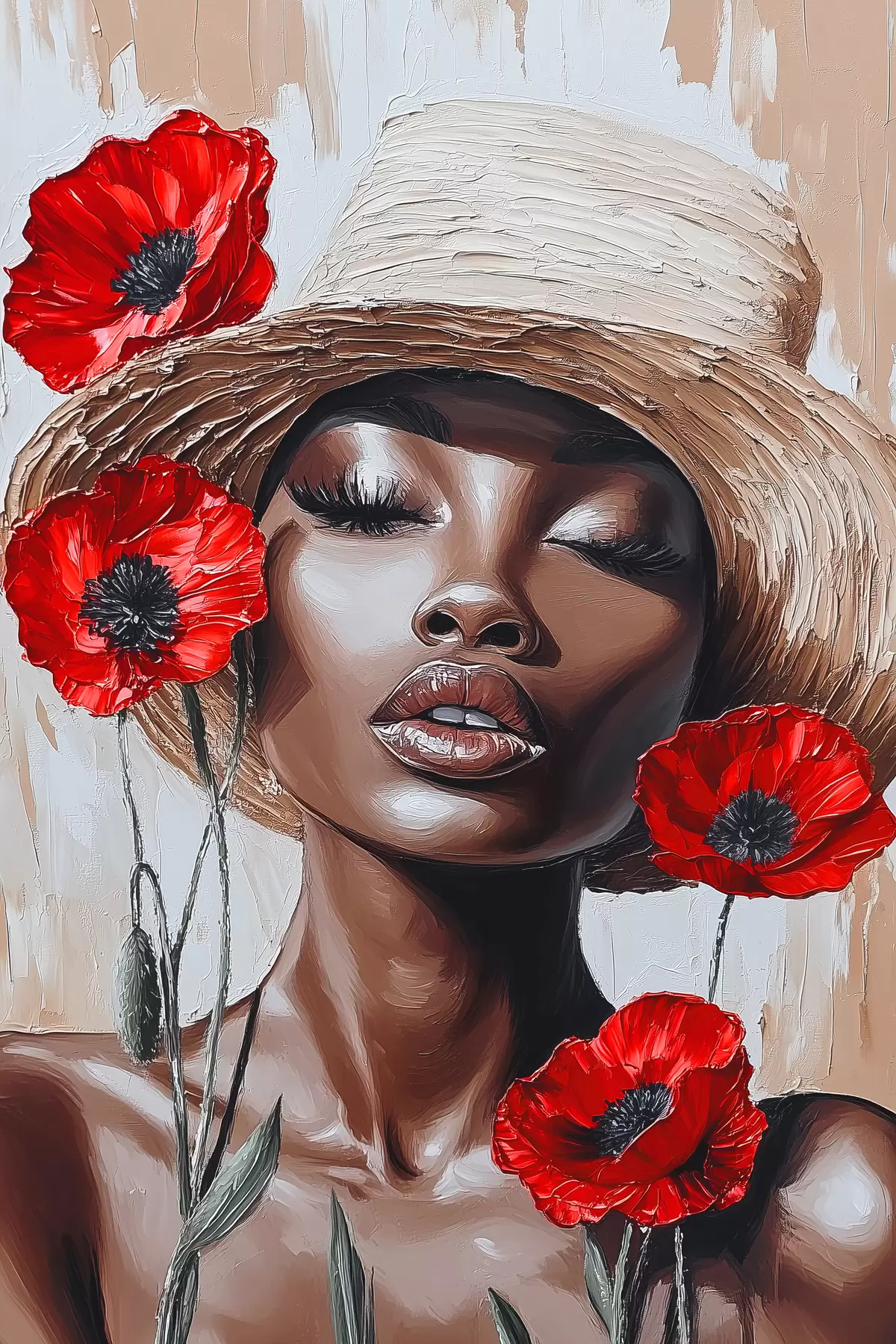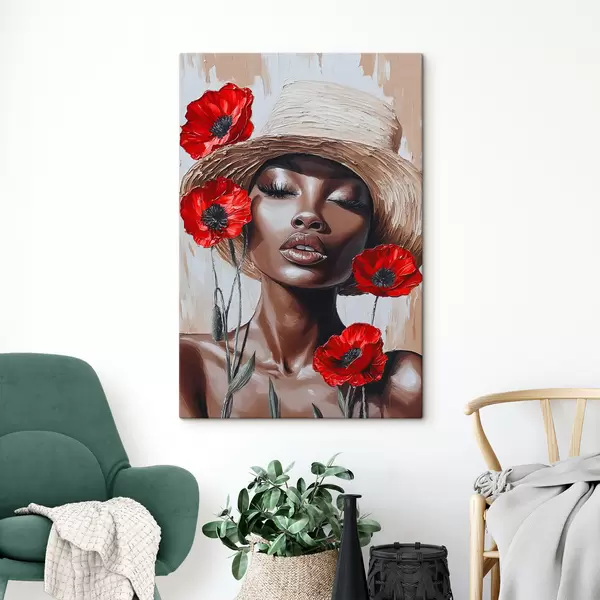 Picture Portrait of a woman in a hat with red poppies Nr s40350