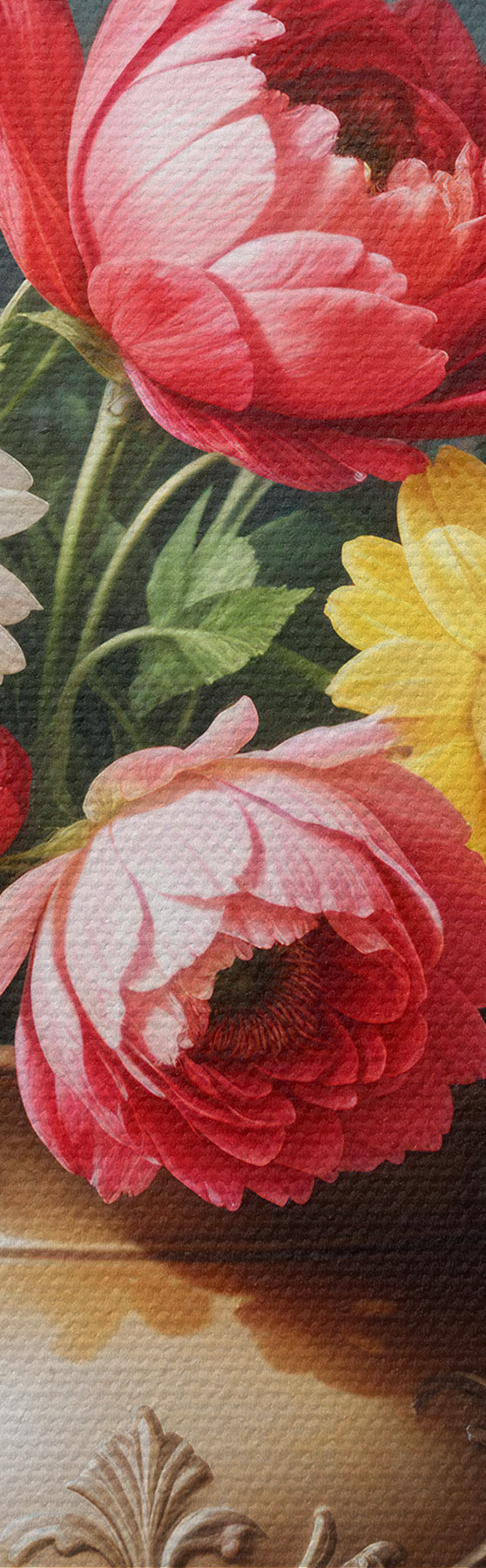 Economic Canvas - a dense and durable material for digital printing, identical to painter's canvas, waterproof surface, realistic reproduction of details, medium-grain material. Premium Canvas - the texture resembles a painter's canvas (interwoven small threads). Soft, detailed reproduction of the image on a matte surface. Eco-Premium - high quality 100% cotton fabric. Thanks to natural cotton fibers, the material is durable and wear-resistant. Excellent color reproduction and detail.