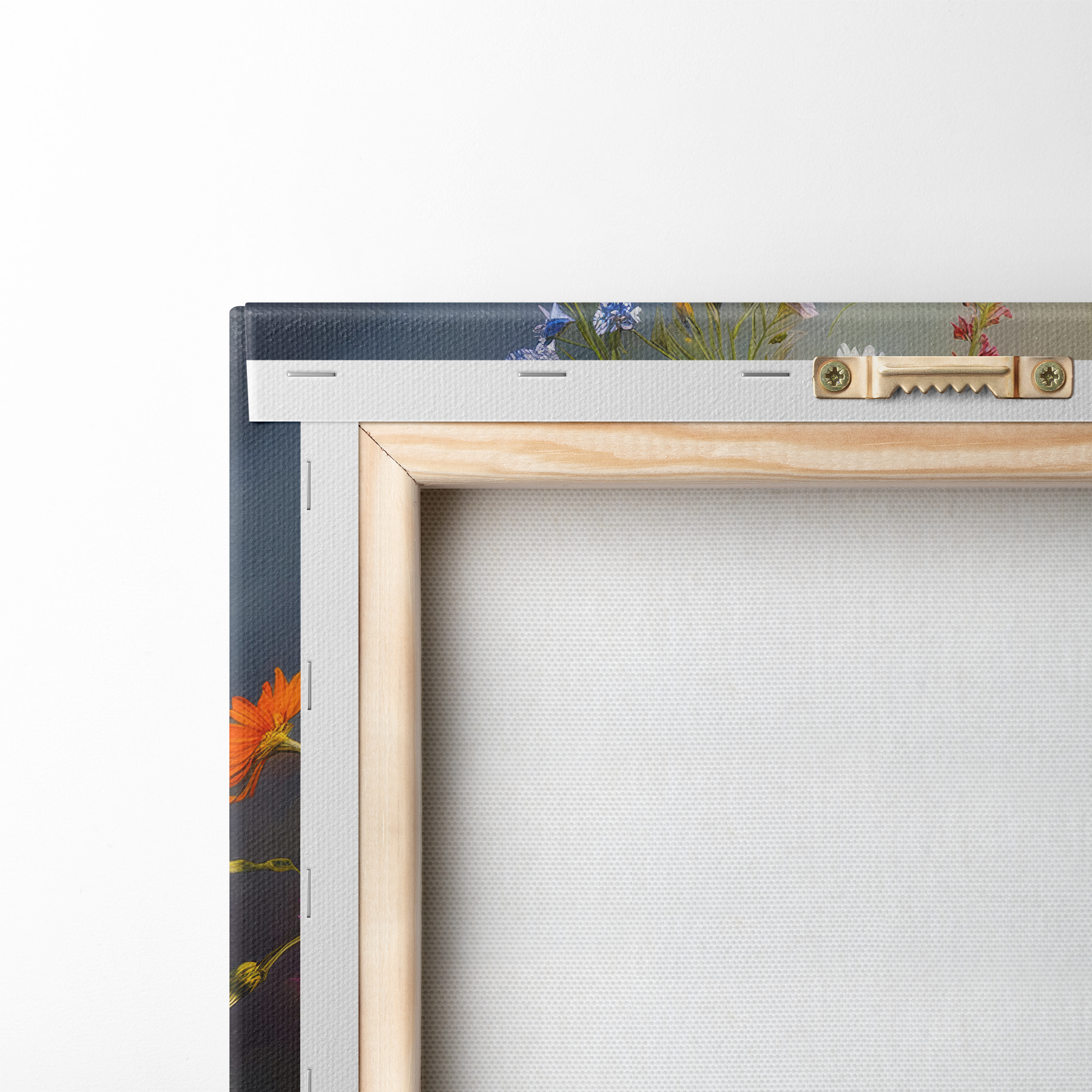 To stretch the canvas on stretcher bars without damaging the image, we use mirrored image.