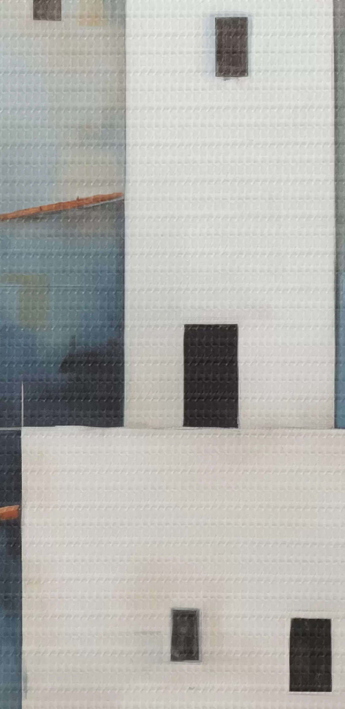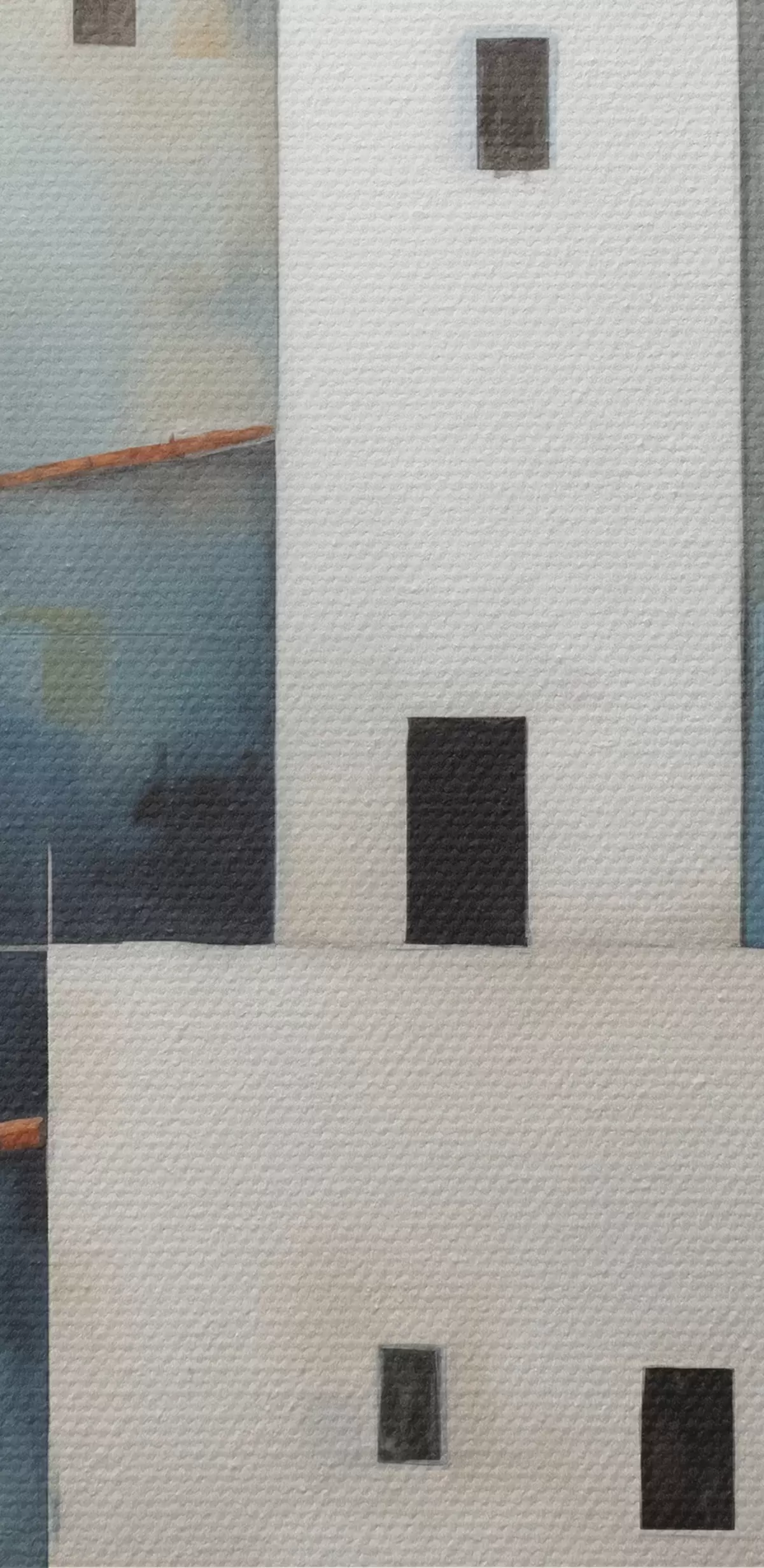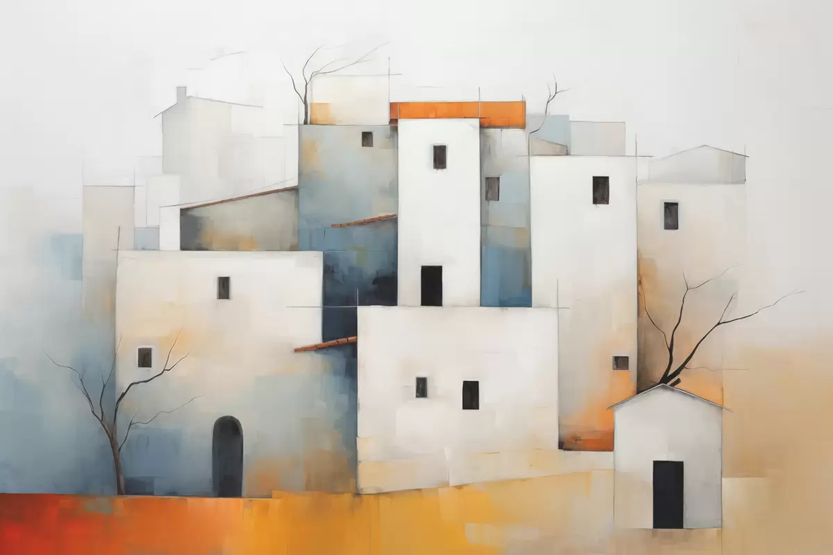 Picture White stylized houses abstract, red, orange, yellow, blue color Nr s40531
