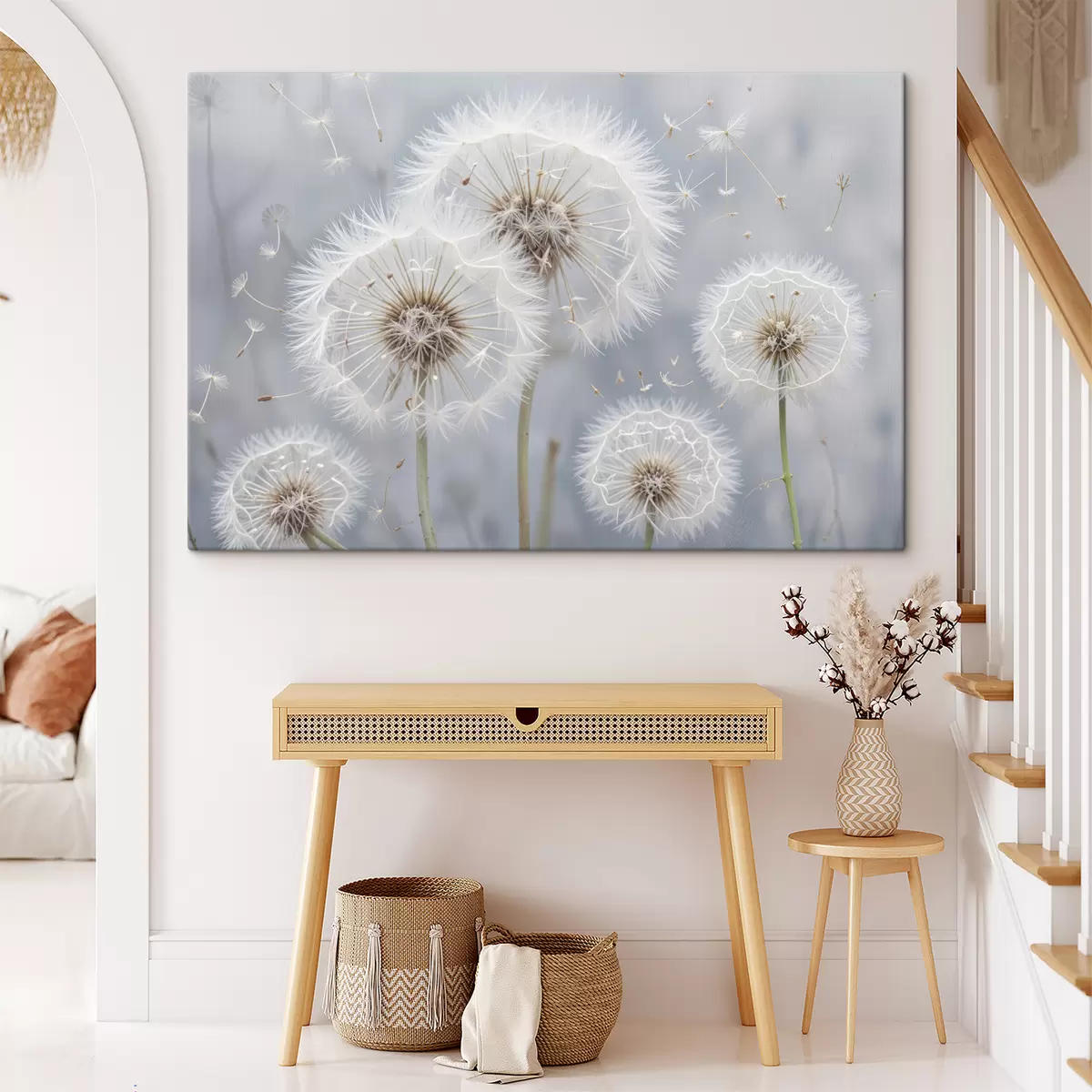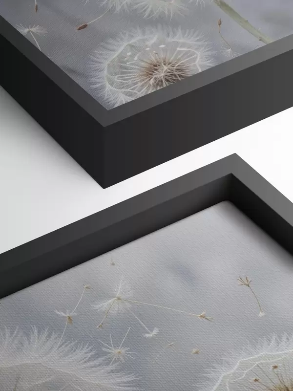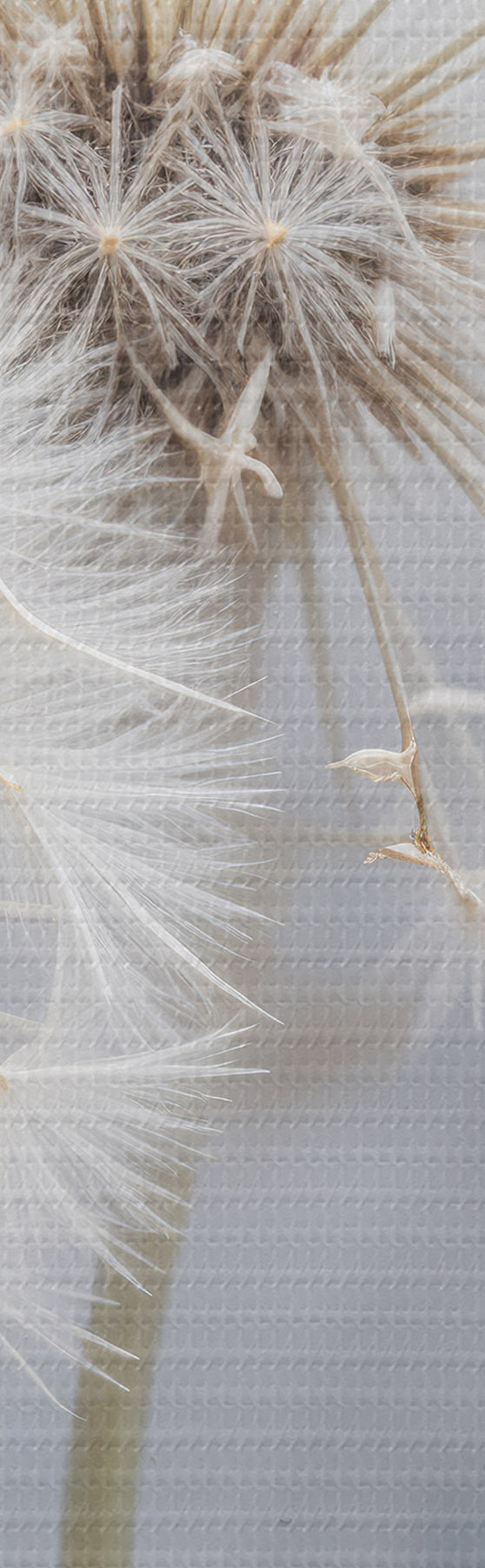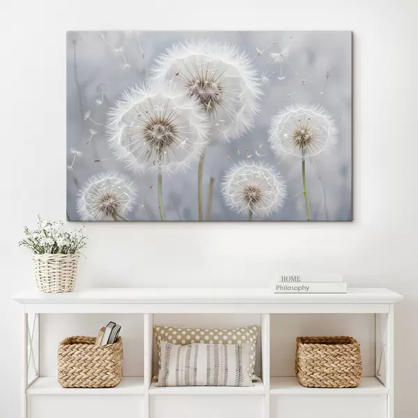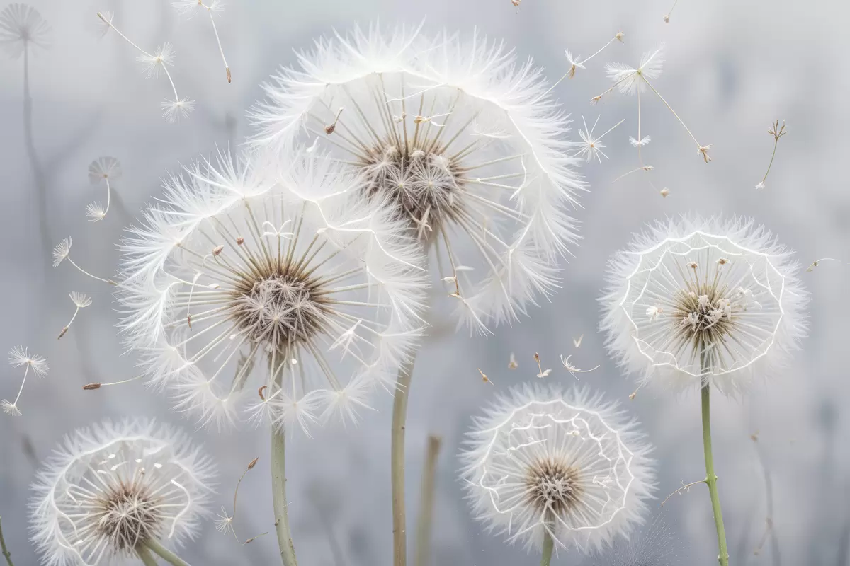 Picture White dandelion flowers with fluffy seeds against a blurred gray background Nr s40556