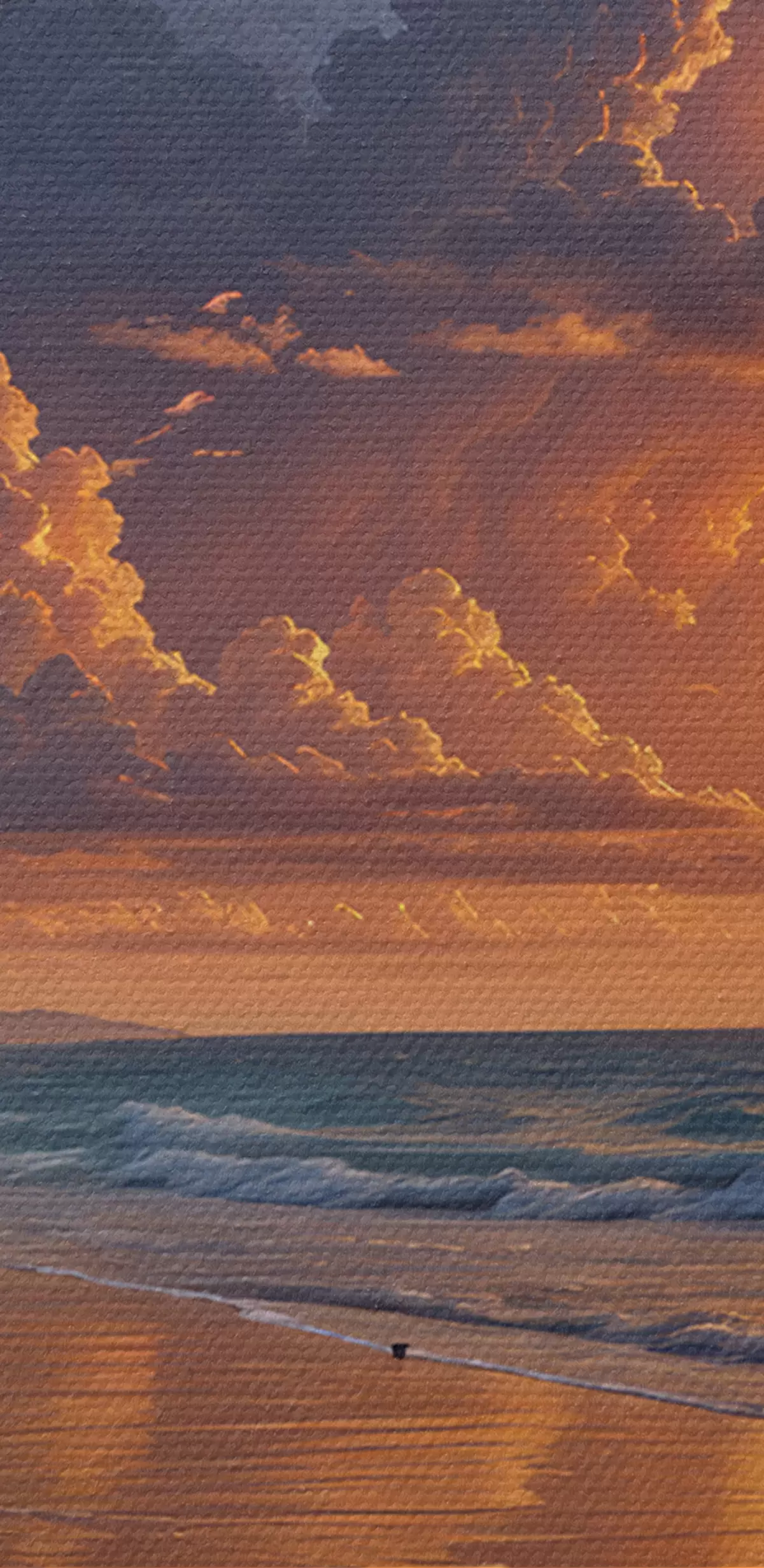The painting can be hung immediately after receiving it. The painting will be stretched on 2 cm wide wooden stretcher.