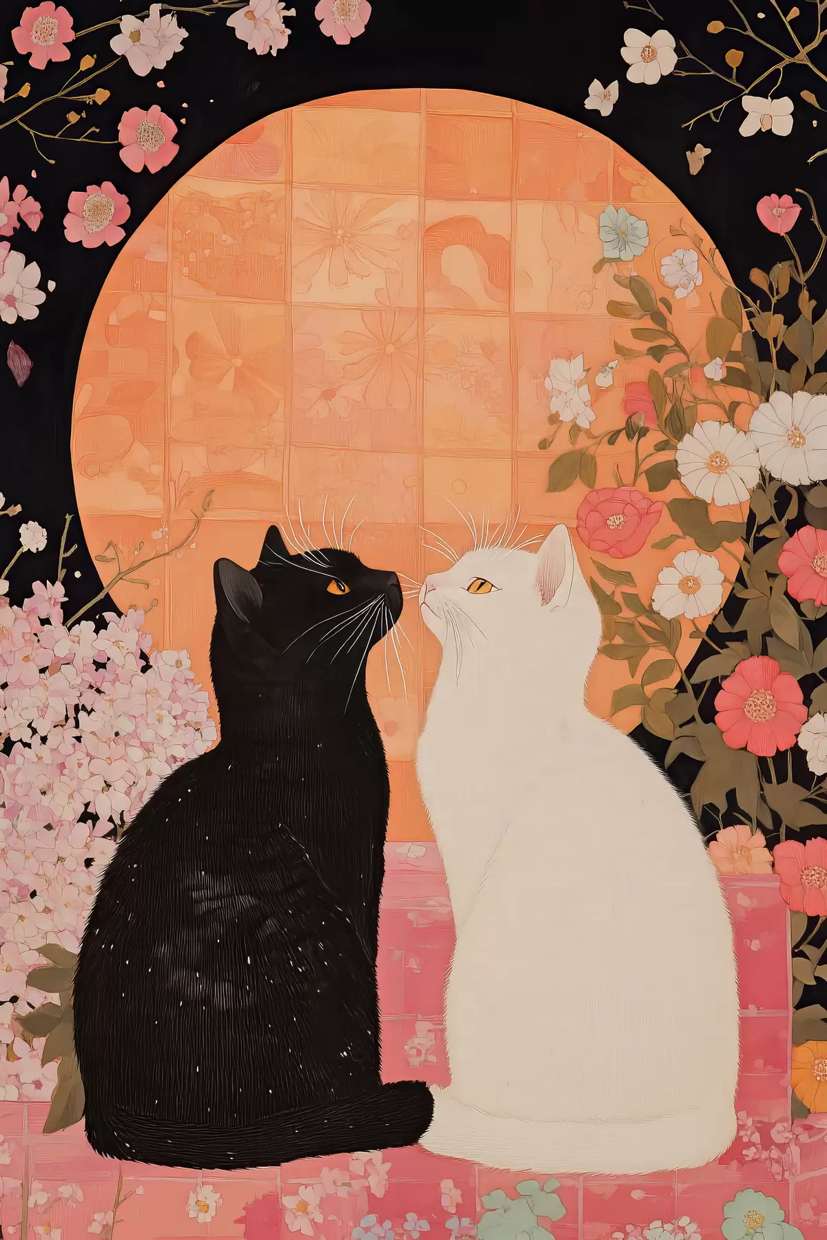 Picture Black and white cat looking cute at each other at sunset Nr s40669