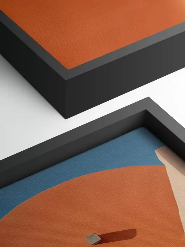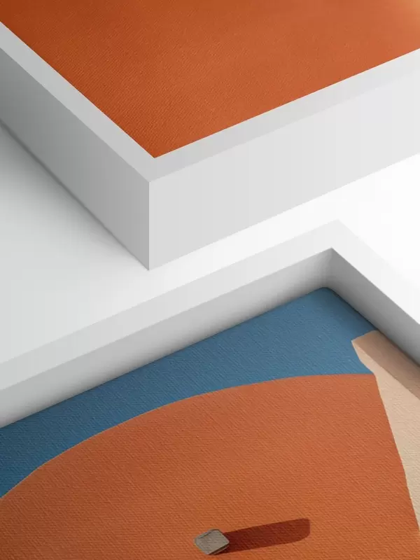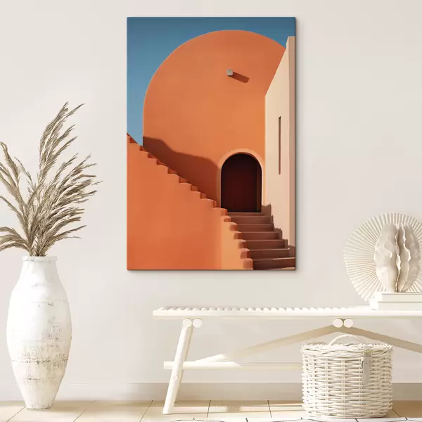 Picture Minimalist architectural building with steps, blue, orange color Nr s40724