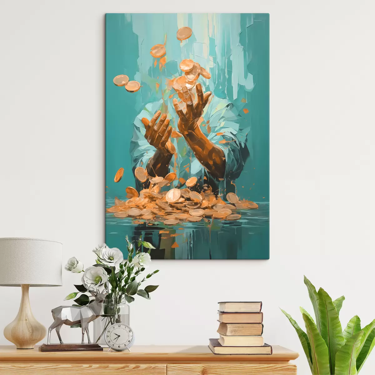 Picture Abstract painting of a man surrounded by coins Nr s40755