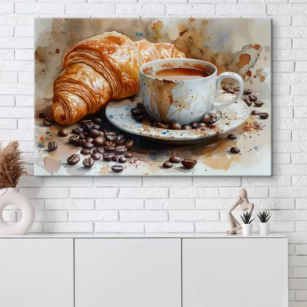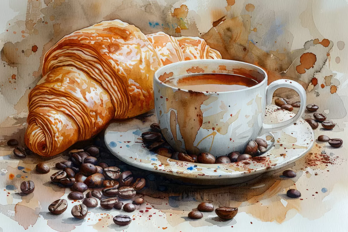 Picture Croissant, morning, croissant and cup of coffee, watercolour Nr s40782