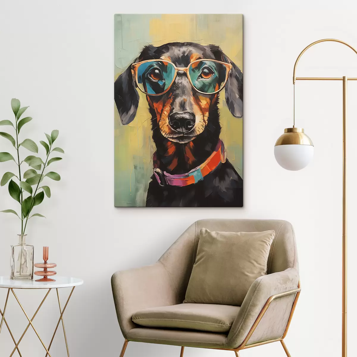 wall murals Portrait of a black dachshund with glasses s40803