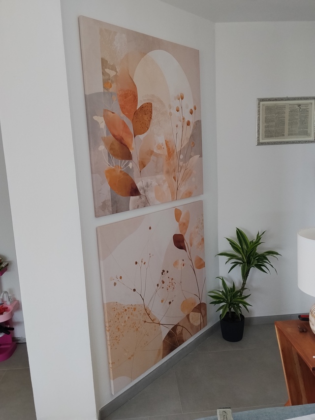 The painting can be hung immediately after receiving it. The painting will be stretched on 2 cm wide wooden stretcher.
