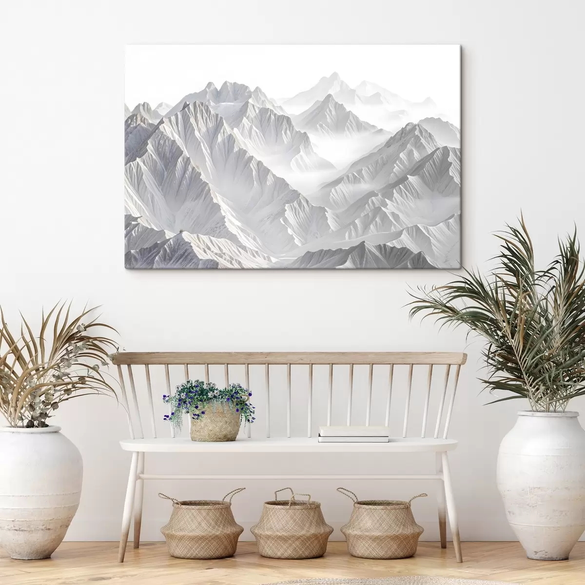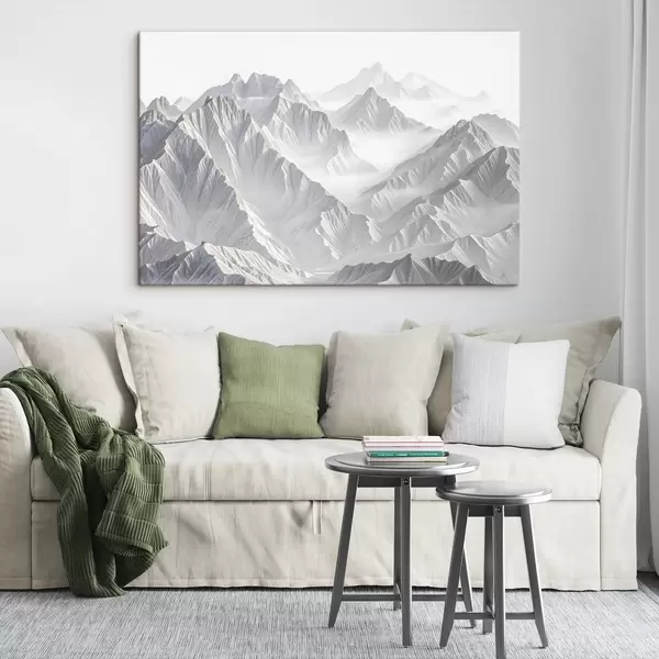 Picture Snowy minimalistic mountain peaks in a misty, foggy landscape Nr s41083