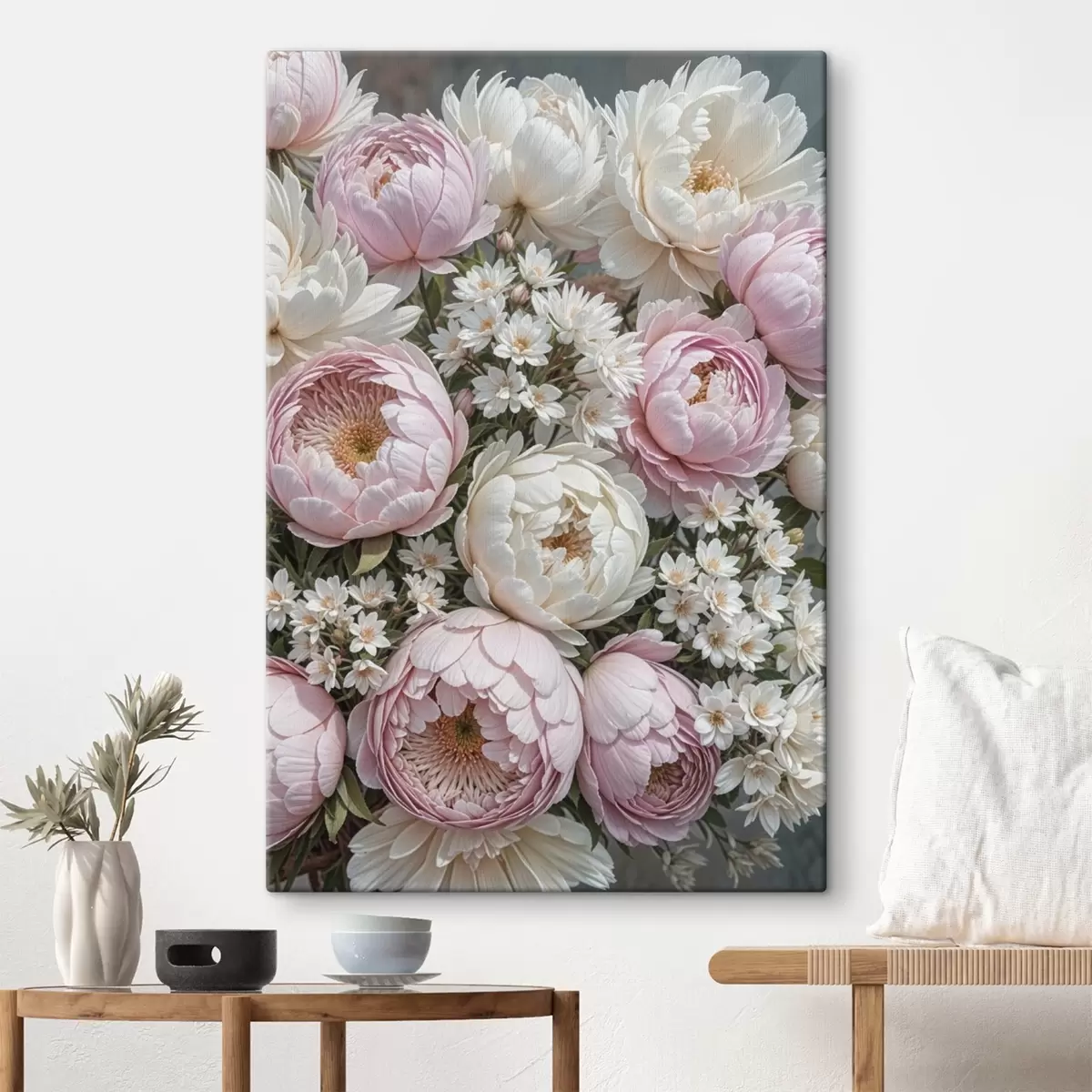 Picture A bouquet of pastel pink peonies and white daisies, arranged in a beautiful floral composition Nr s41255