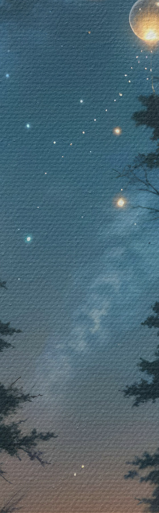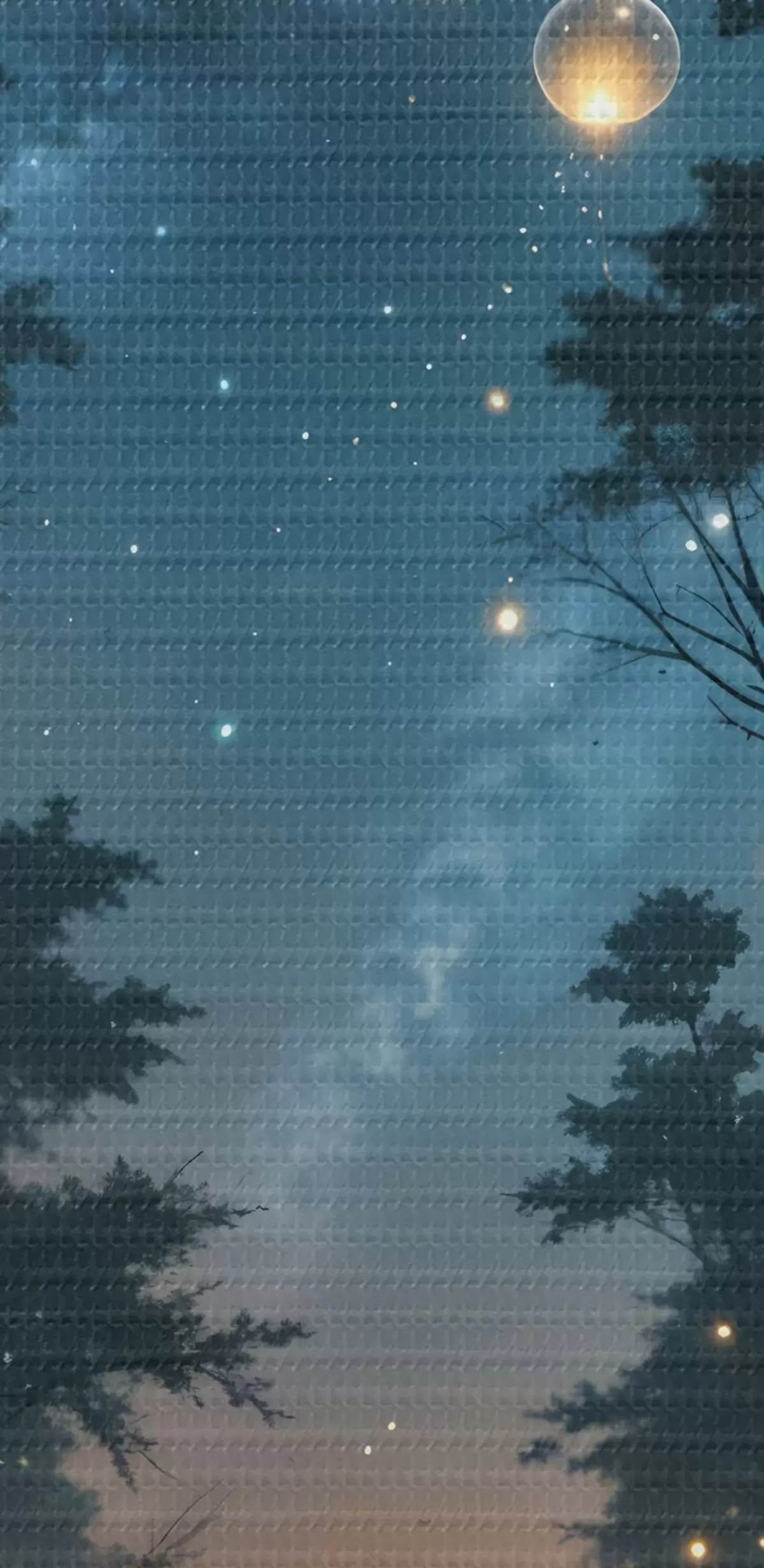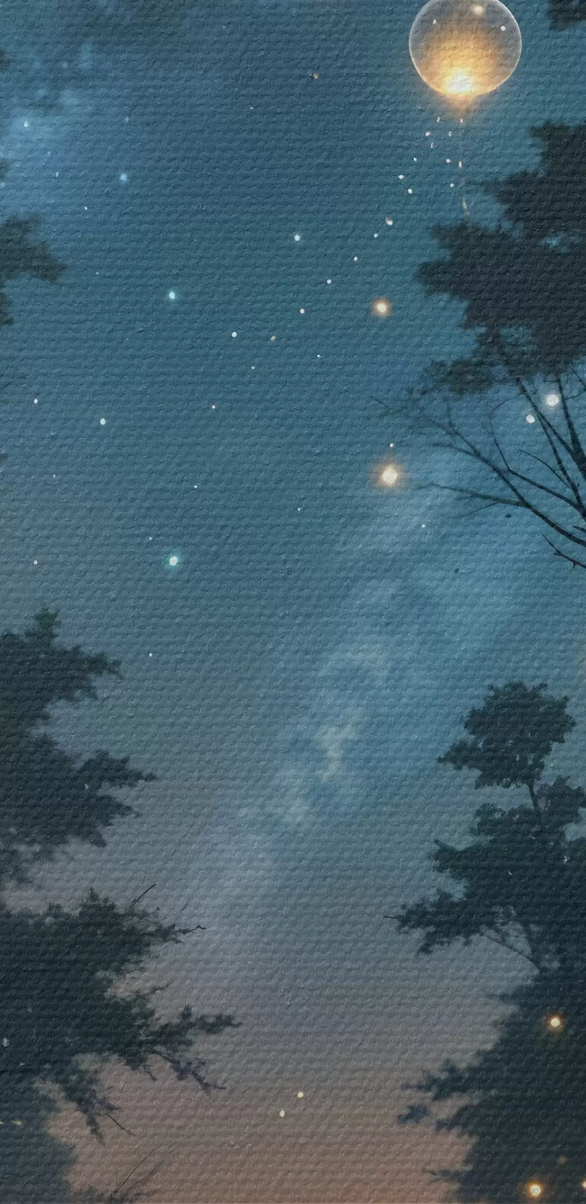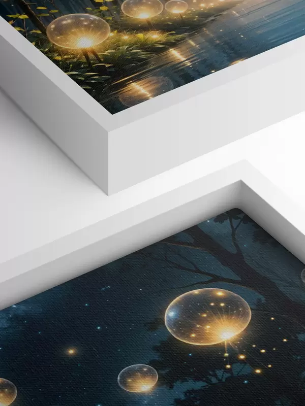 Picture A magical forest at night with yellow orbs and fireflies floating among the trees, creating a whimsical atmosphere Nr s41259