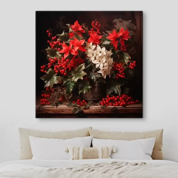 Picture Bouquet with holly and christmas flower on dark background Nr s41272