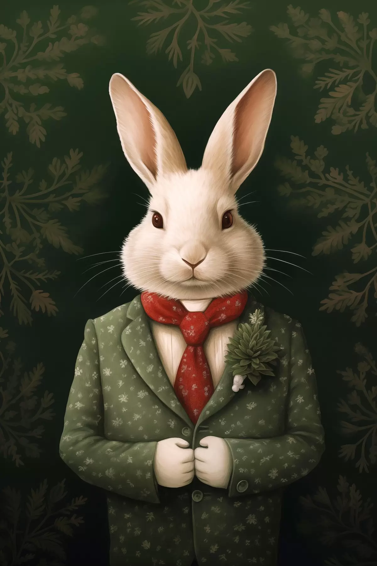 Picture White hare in a green suit and red tie illustration Nr s41278