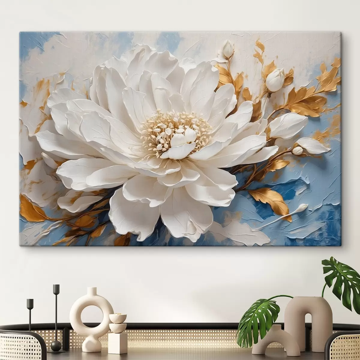 Picture White flower on blue-white background Nr s41311