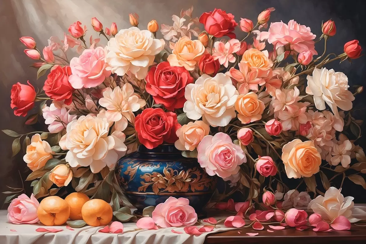 Picture Bouquet of flowers in a blue volumetric vase Nr s41518