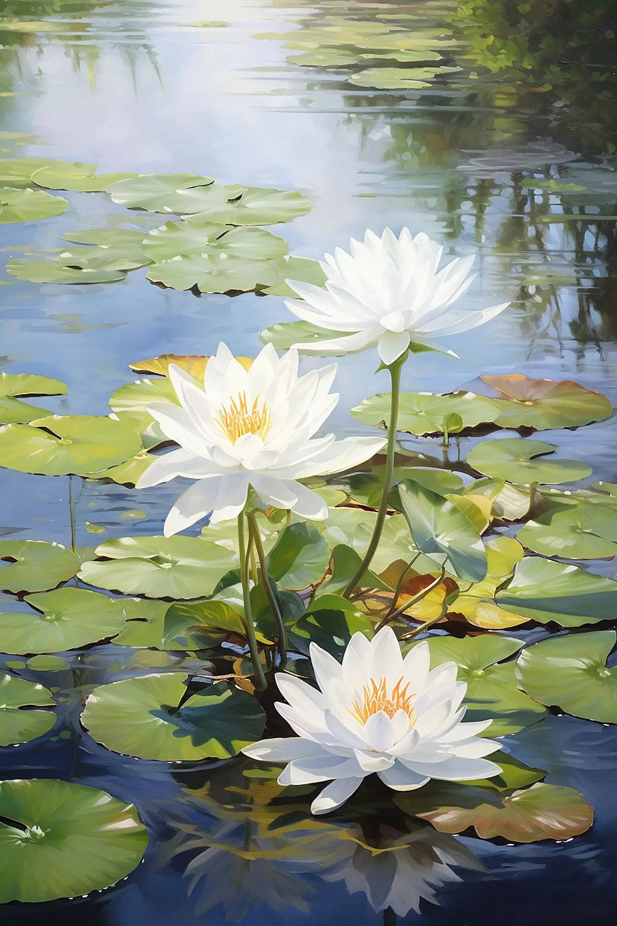 Picture Three white water lilies, lotus flowers Nr s41572