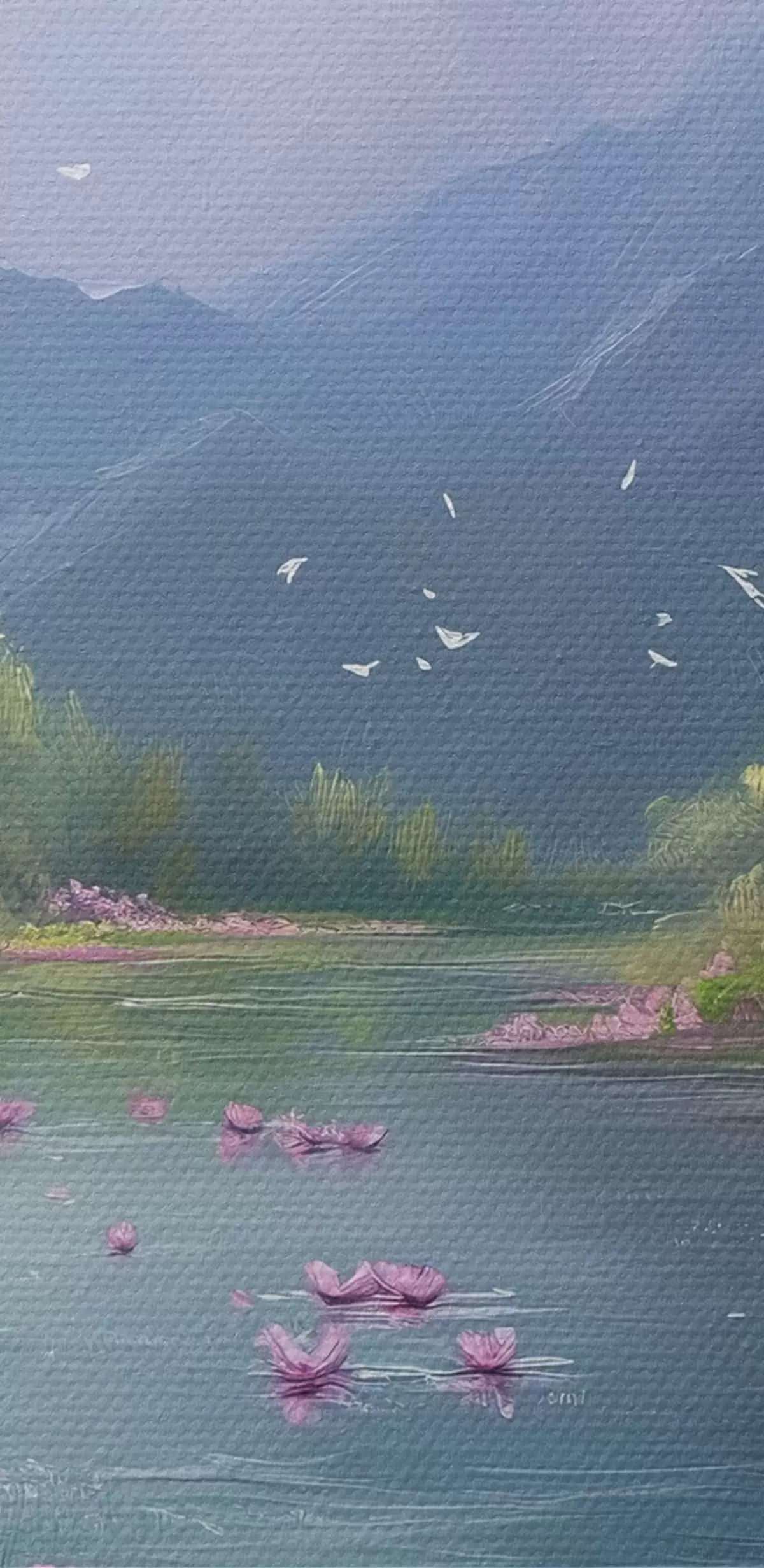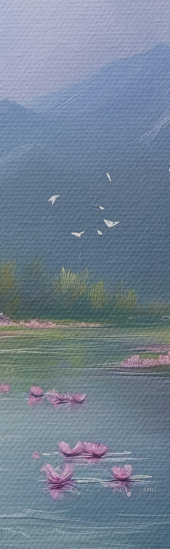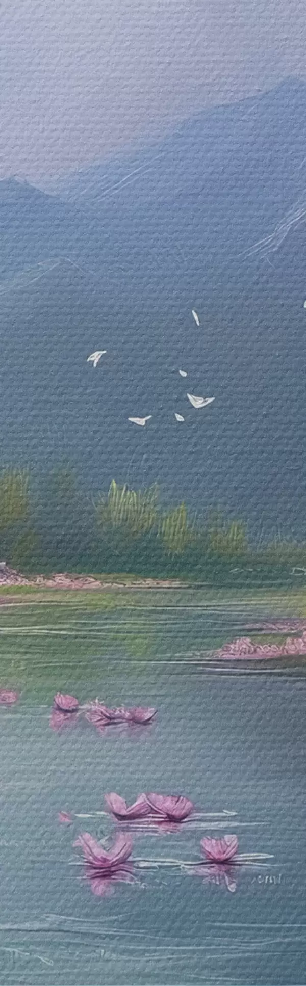The painting can be hung immediately after receiving it. The painting will be stretched on 2 cm wide wooden stretcher.