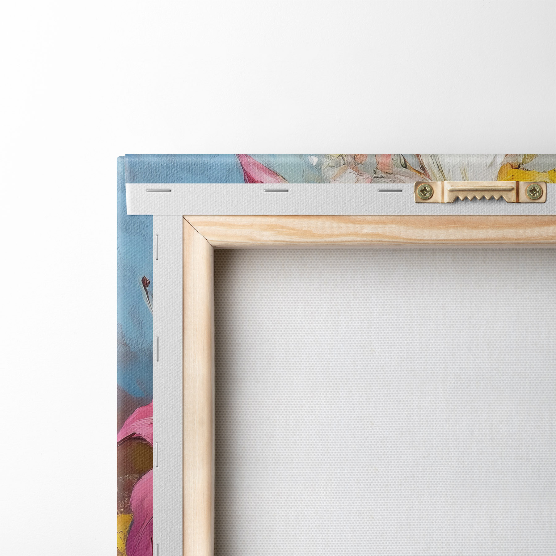 To stretch the canvas on stretcher bars without damaging the image, we use mirrored image.