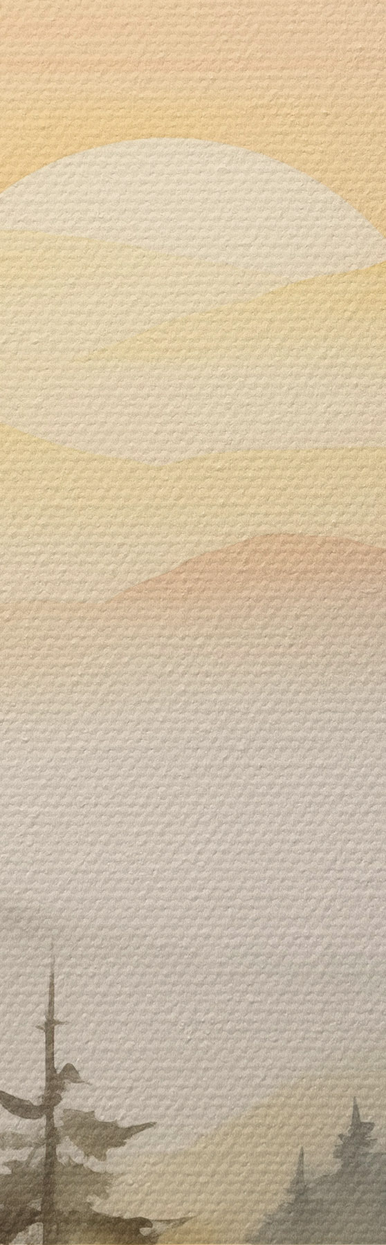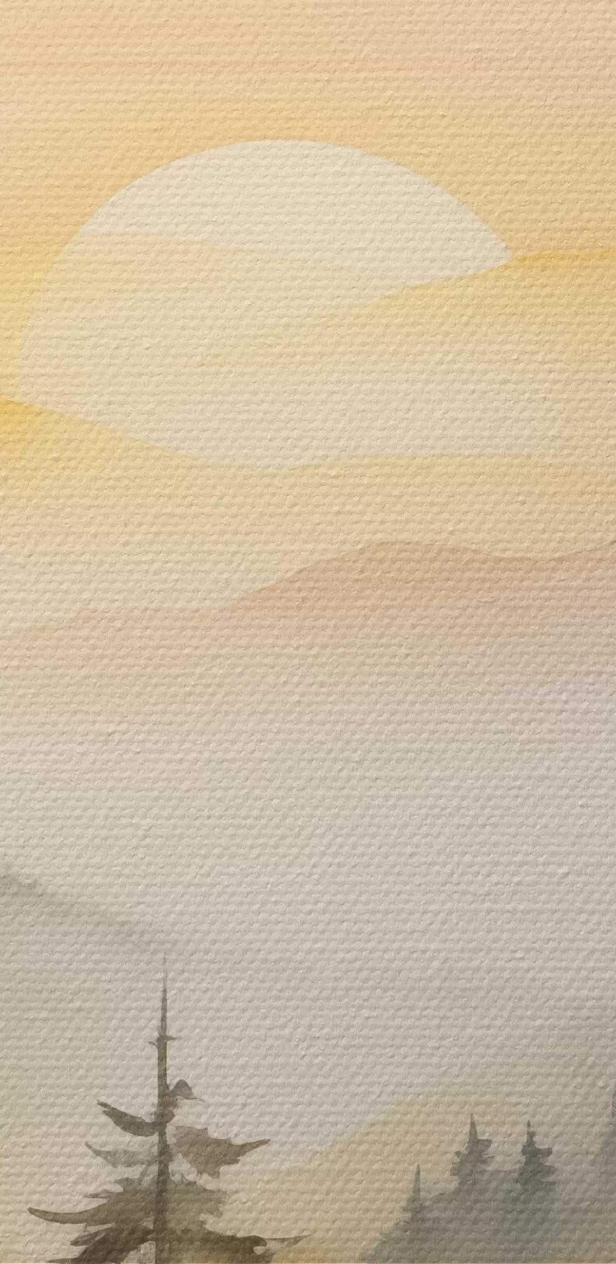 Picture Autumn mountains landscape, pine forest, sunset, watercolor Nr s41645