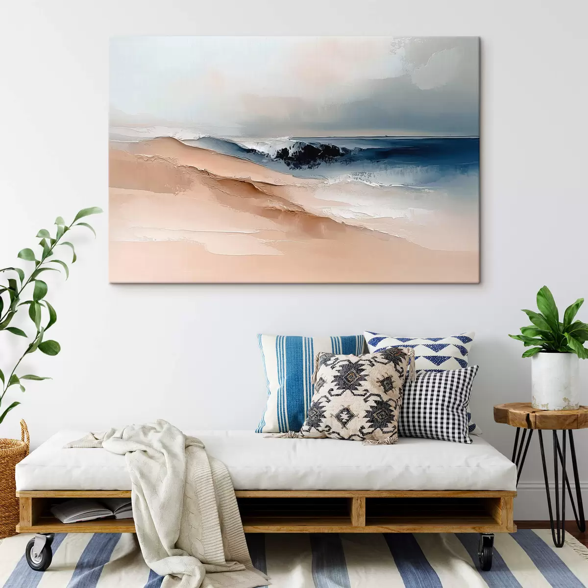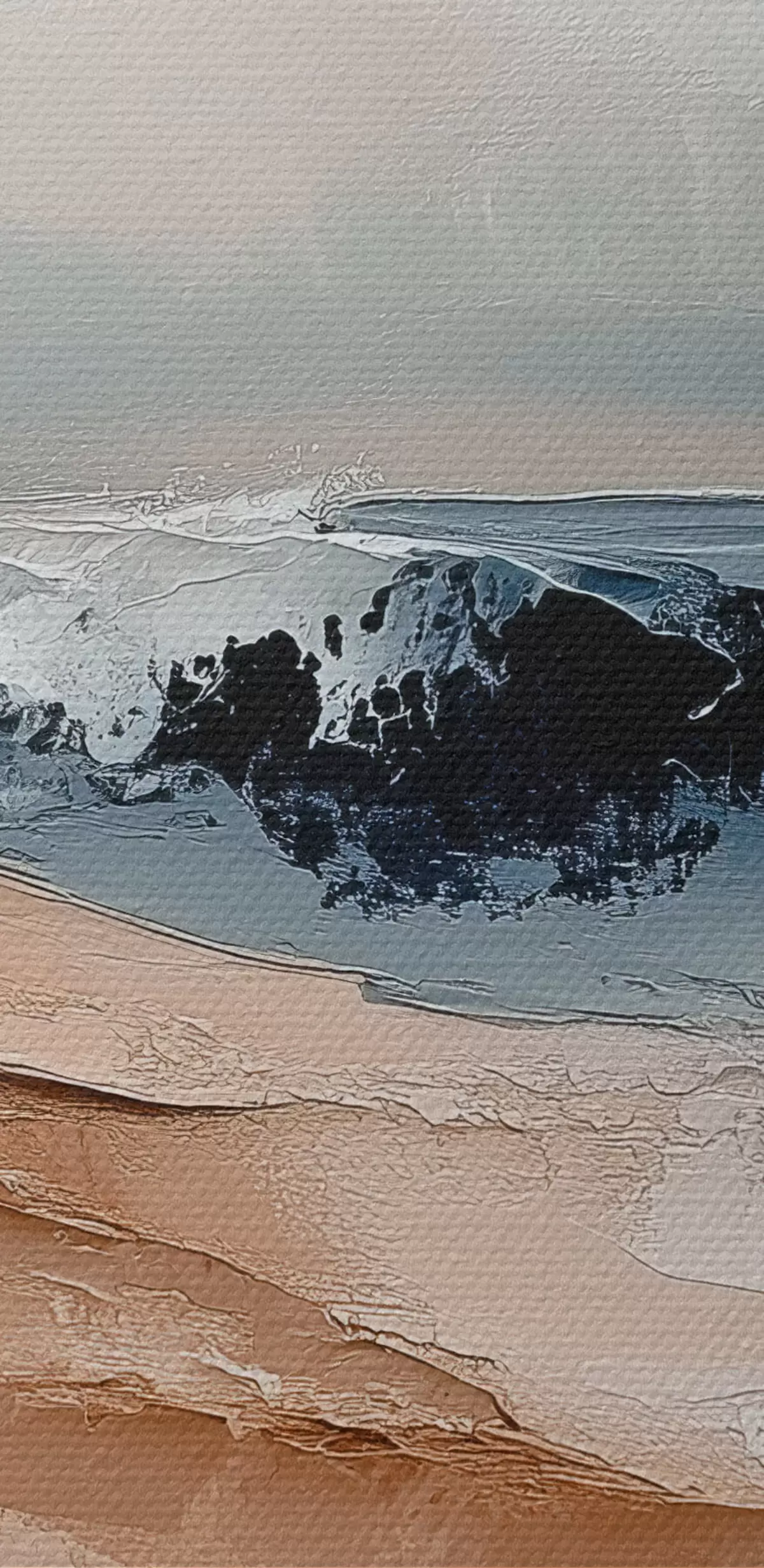 The painting can be hung immediately after receiving it. The painting will be stretched on 2 cm wide wooden stretcher.