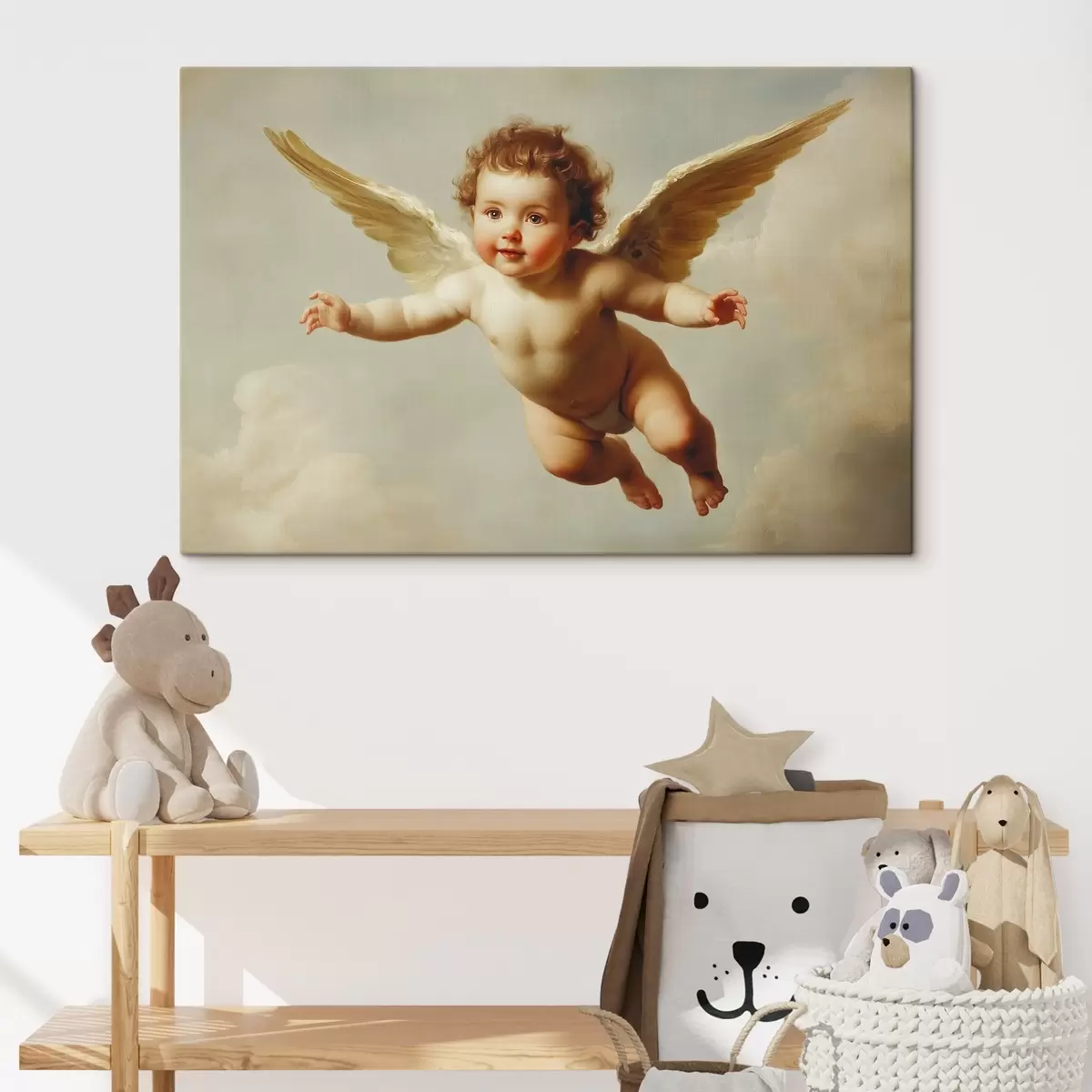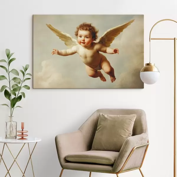 Picture Angelic baby flying in the air in the style of painting Nr s41876