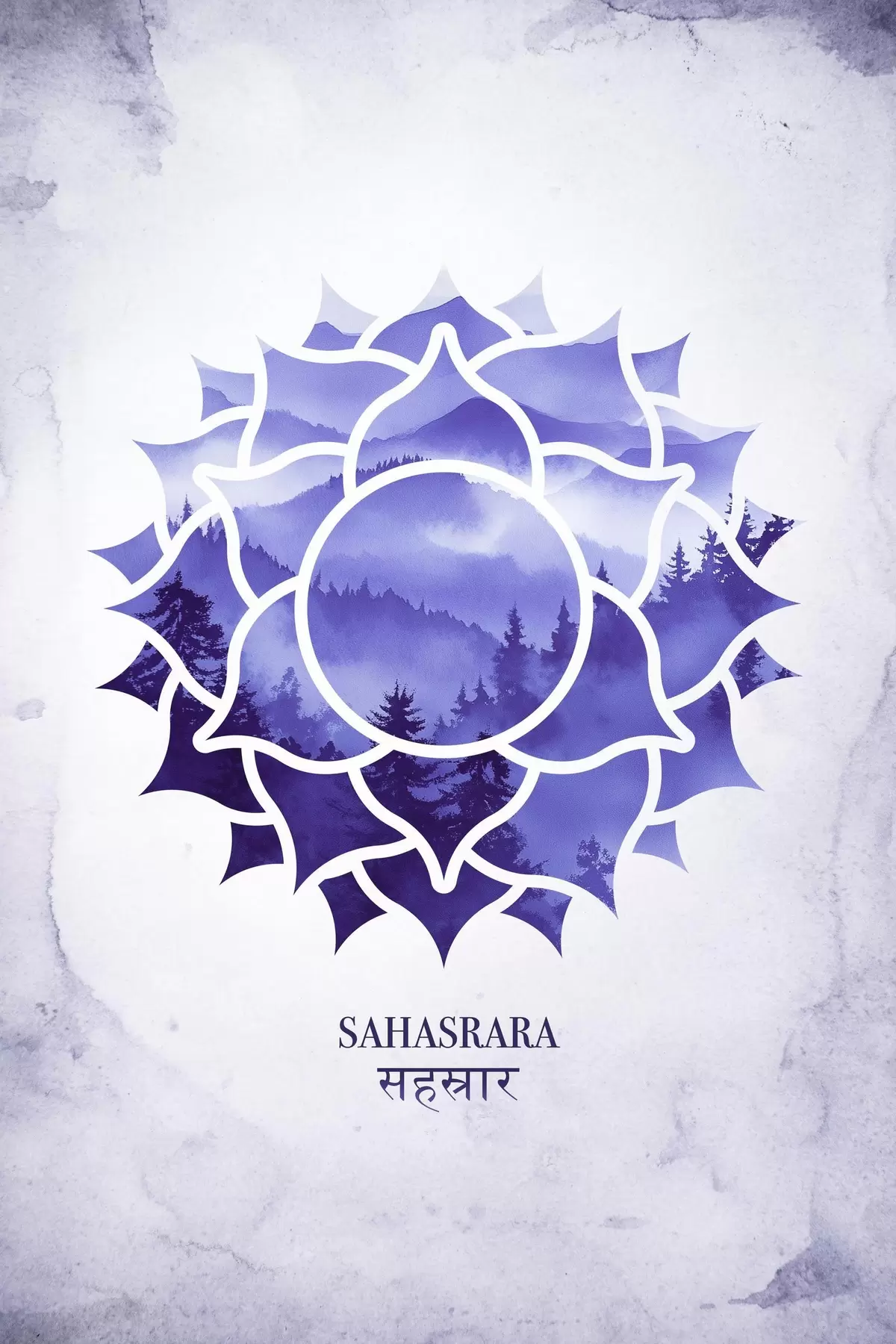 Picture Sahasrara chakra, purple chakra, esoteric, meditation, buddhism, watercolor style mountains Nr s41886