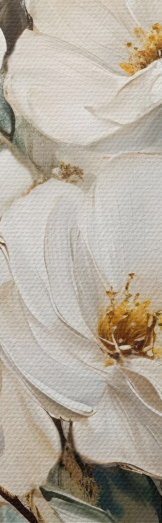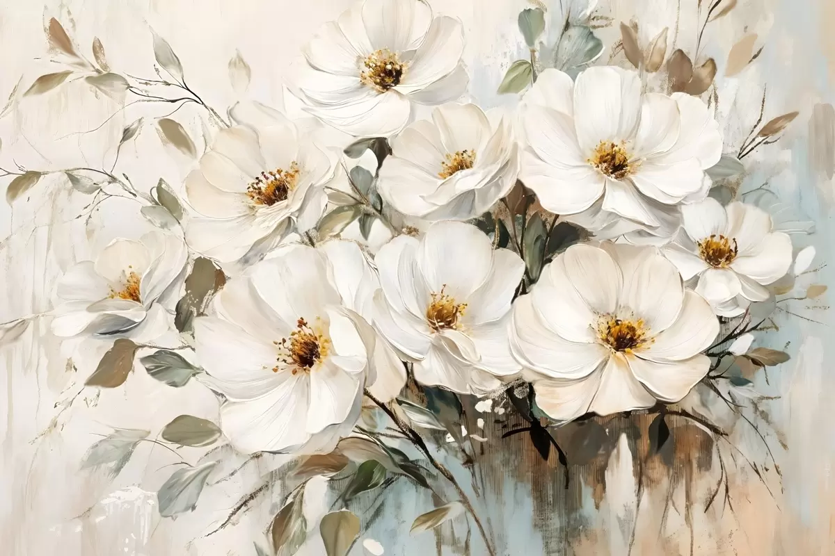 Picture A bouquet of large white flowers in oil painting style with yellow centers against a light background Nr s42222