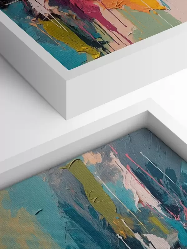 The painting can be hung immediately after receiving it. The painting will be stretched on 2 cm wide wooden stretcher.
