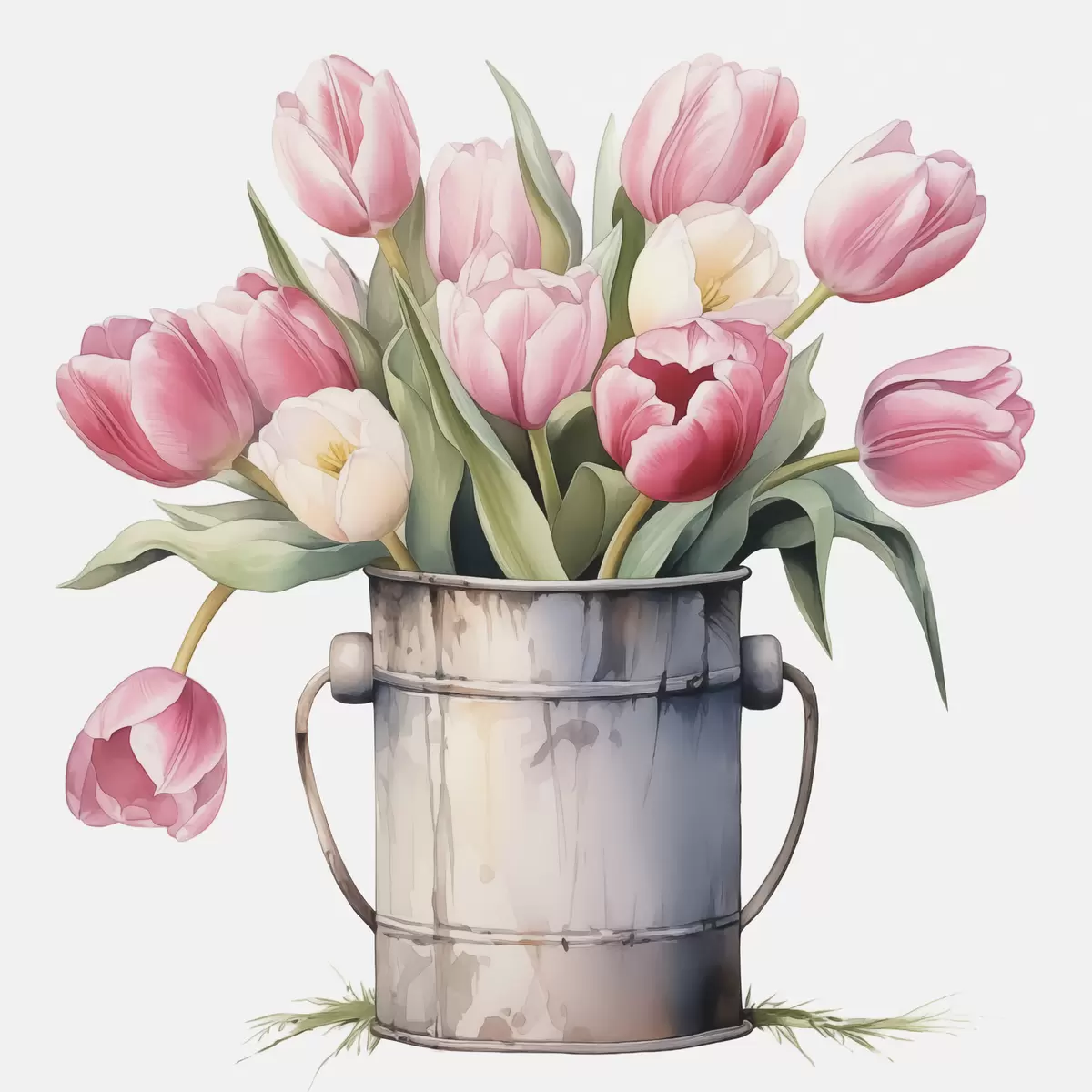 Picture Bouquet of tulips in a bucket imitation of watercolor Nr s42353