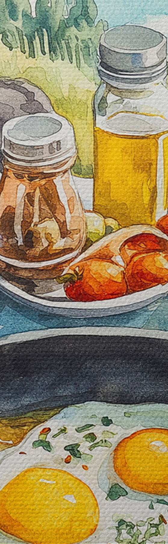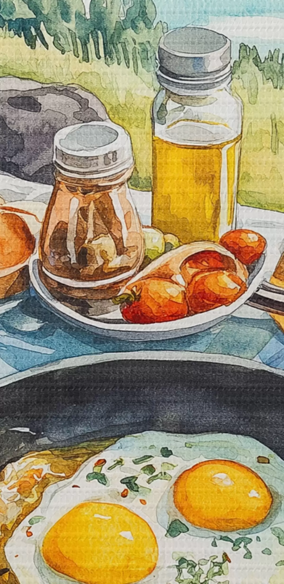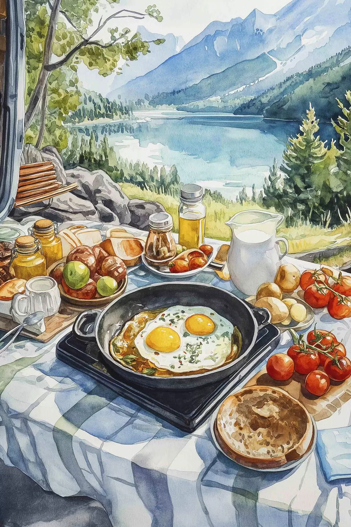 Picture Aesthetic breakfast near the lake, watercolor style Nr s42432