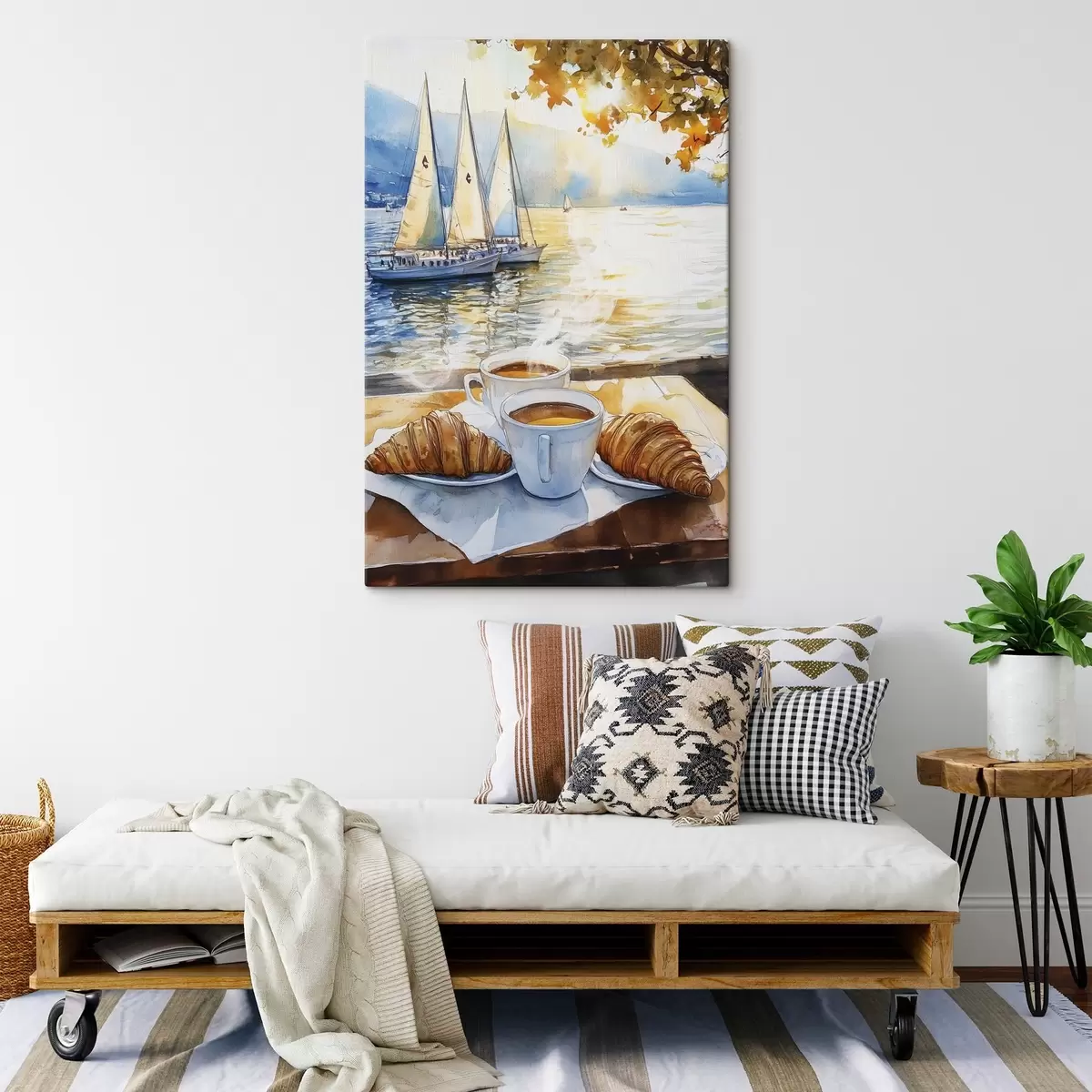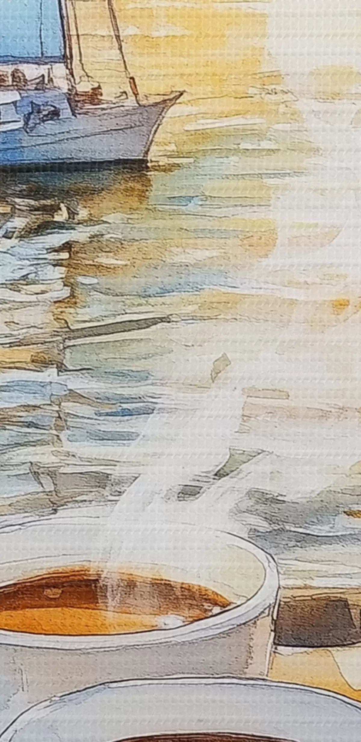 wall murals Cups of coffee, sunset colors, lake, sailboats, nature, travel s42443