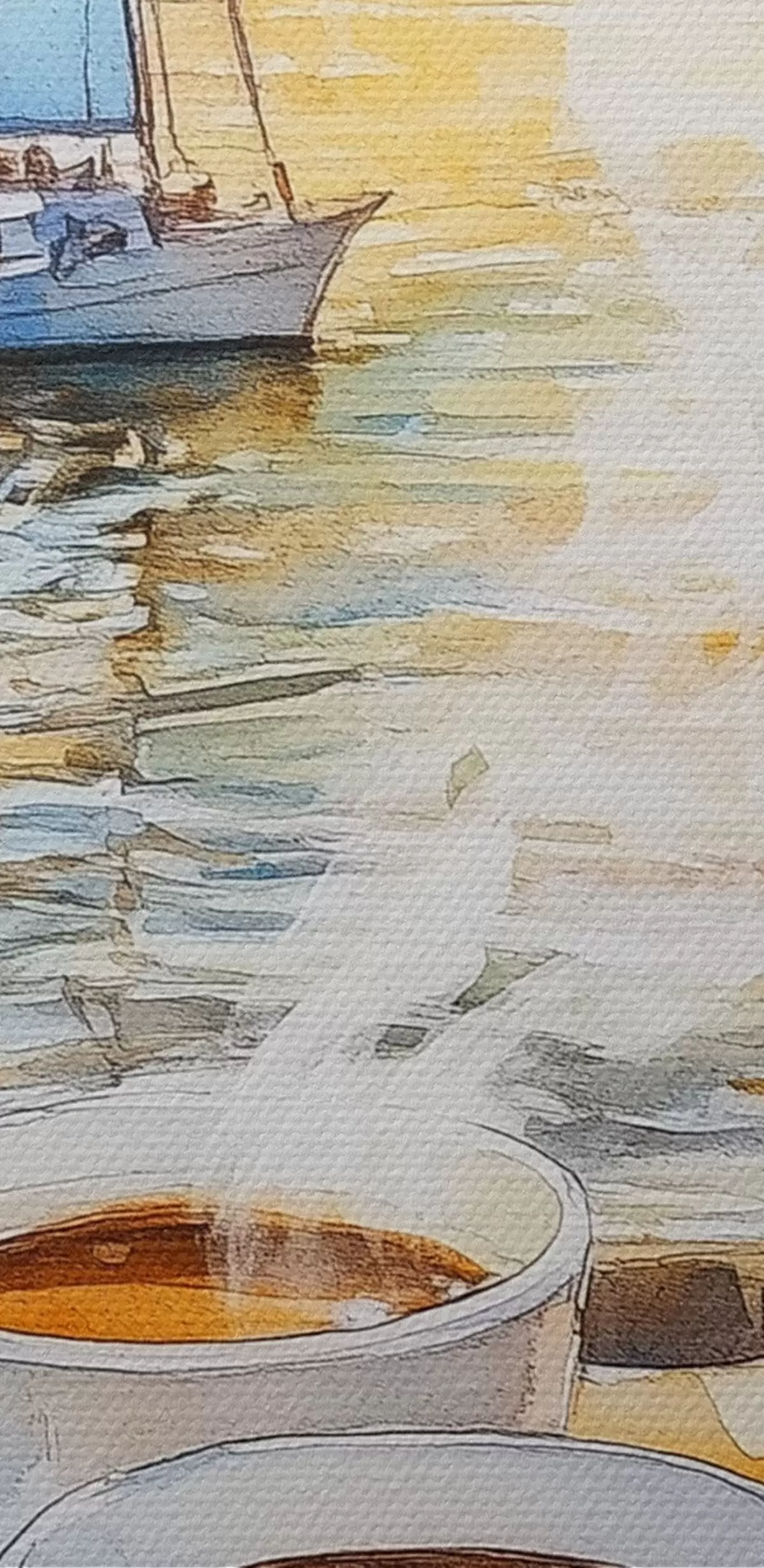 Picture Cups of coffee, sunset colors, lake, sailboats, nature, travel Nr s42443