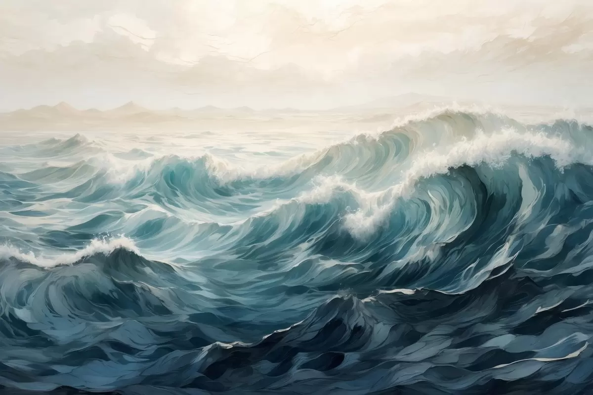 wall murals Raging waves in fog s42541